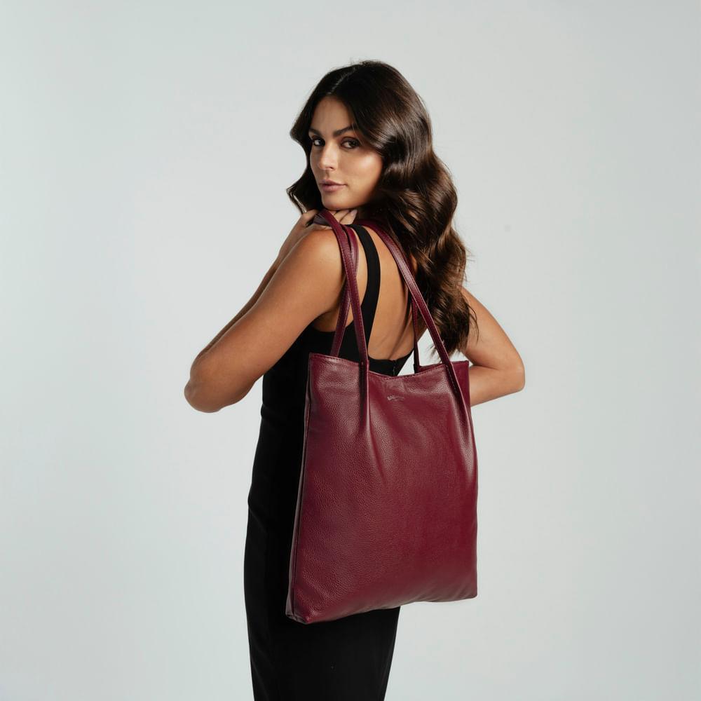 Bolsa de Ombro Feminina Grande de Couro Shopping Bag BG Vinho