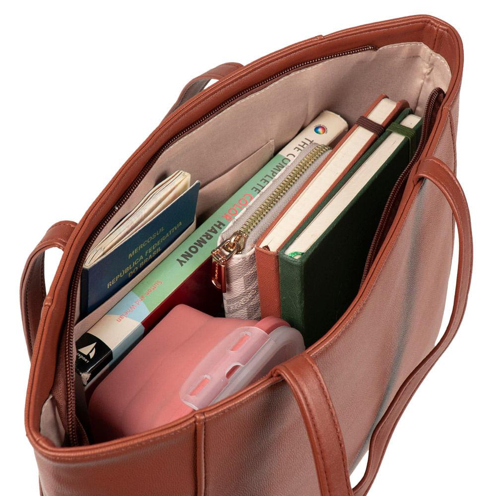 Bolsa de Ombro Feminina Média Alça Alongada Tote Marrom