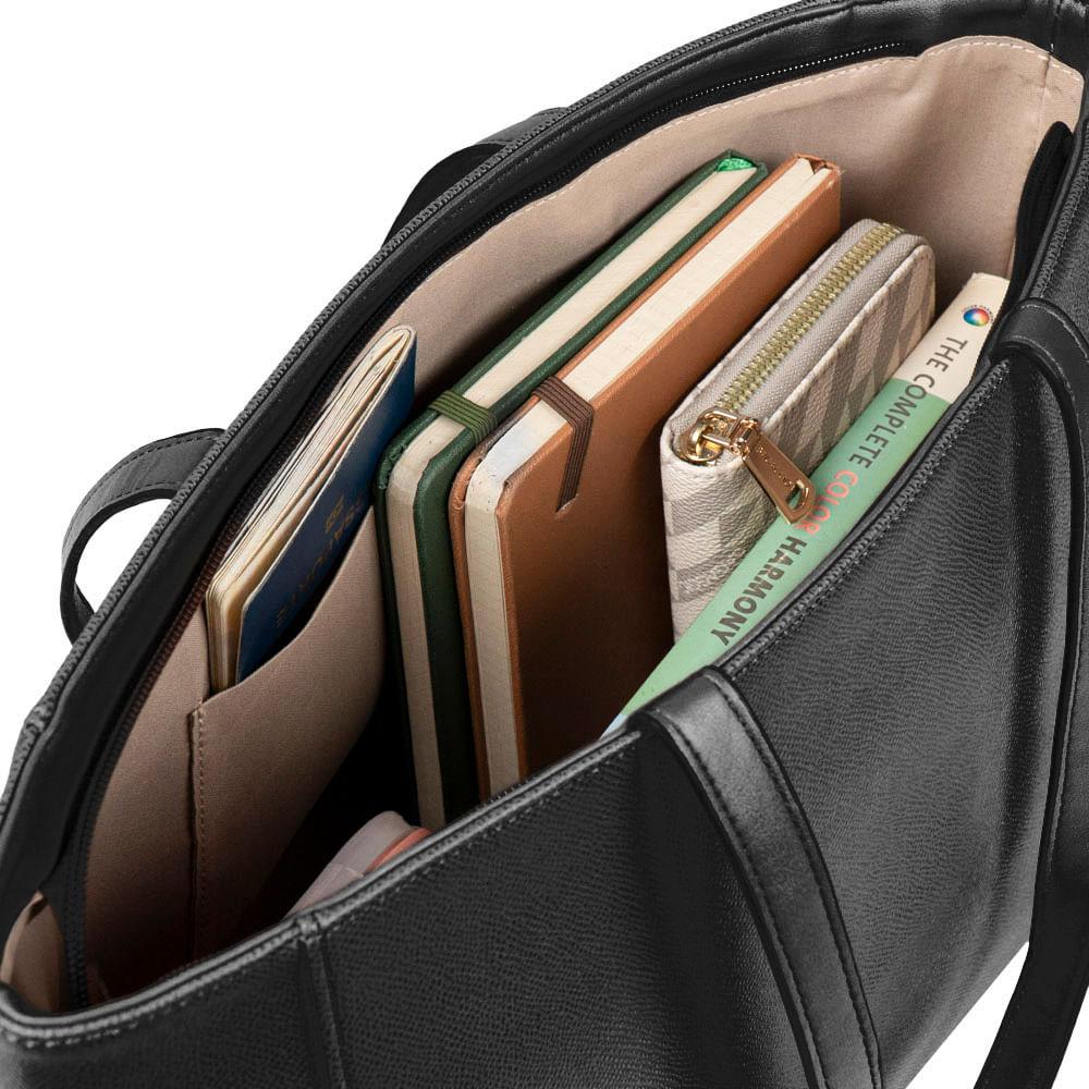 Adicione sofisticação ao seu dia a dia com a Bolsa Tote Bagaggio Preta. Com um design minimalista e acabamento texturizado, este modelo oferece a elegância ideal para o ambiente de trabalho ou passeios casuais. Seu amplo espaço interno com forro claro facilita a organização, comportando perfeitamente livros, agendas e itens essenciais. Equipada com alças de ombro confortáveis e o logo discreto em dourado, é a bolsa feminina versátil que combina estilo e praticidade para acompanhar sua rotina.