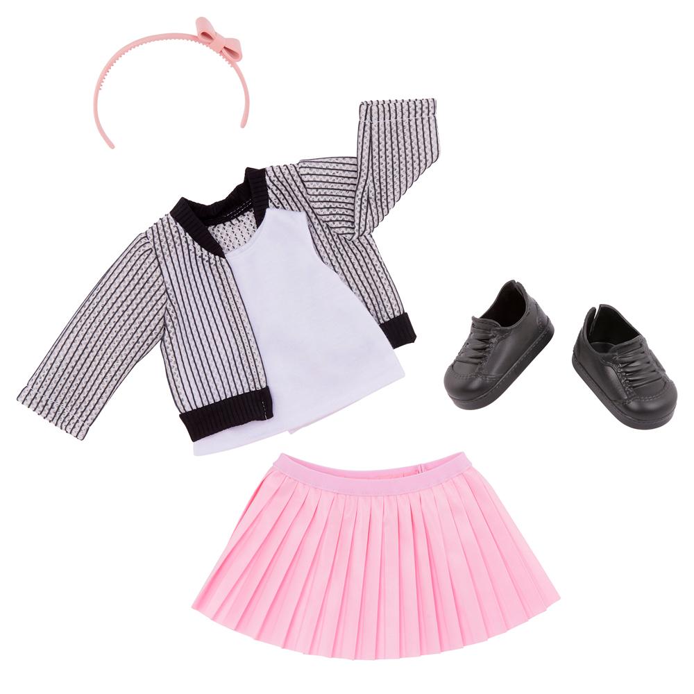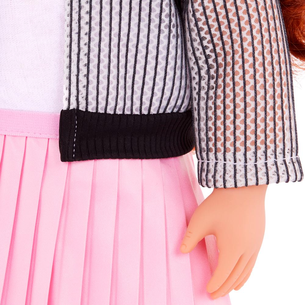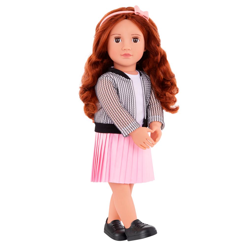 Conheça Jacinta, a encantadora boneca Our Generation de 46 cm que vai despertar a imaginação e o carinho das crianças! Com corpo macio e abraçável, Jacinta possui olhos castanhos realistas que abrem e fecham, além de um cabelo ondulado castanho-avermelhado perfeito para escovar e criar diferentes penteados, como rabos de cavalo, tranças e coques.Ela chega vestida com uma jaqueta moderna, blusa casual, saia plissada rosa vibrante, tiara com laço, calcinha e sapatos, ideal para brincadeiras de vestir e contar histórias. Suas articulações no pescoço, braços e pernas facilitam a troca de roupas e ampliam a diversão, permitindo que as crianças explorem a criatividade com as roupas e acessórios Our Generation.
