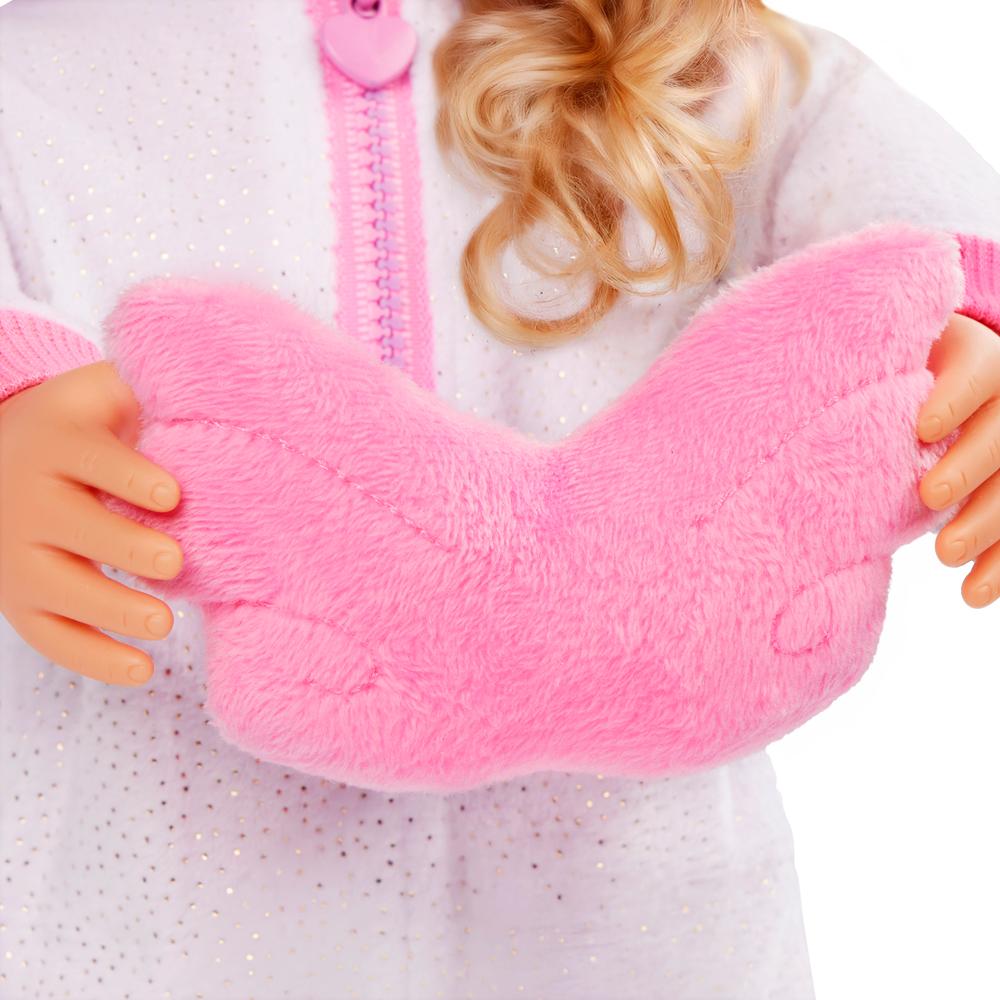 Transforme a hora de dormir em uma aventura mágica com a adorável Boneca Our Generation Lilian! Com 46 centímetros de altura, cabelos loiros ondulados e olhos azuis expressivos, Lilian encanta com seu look de unicórnio cheio de brilho. Ela vem vestida com um pijama branco com detalhes brilhantes, capuz com orelhinhas e chifre de unicórnio, além de pantufas cor-de-rosa super fofas e uma pelúcia combinando.Ideal para estimular a imaginação, o cuidado e o afeto, Lilian é perfeita para crianças que adoram criar histórias encantadas. Seu corpo é macio, com braços, pernas e cabeça articuláveis, o que facilita nas brincadeiras de vestir e nas poses criativas. Compatível com outros acessórios e roupas da linha Our Generation, ela garante horas de diversão mágica e cheia de estilo!