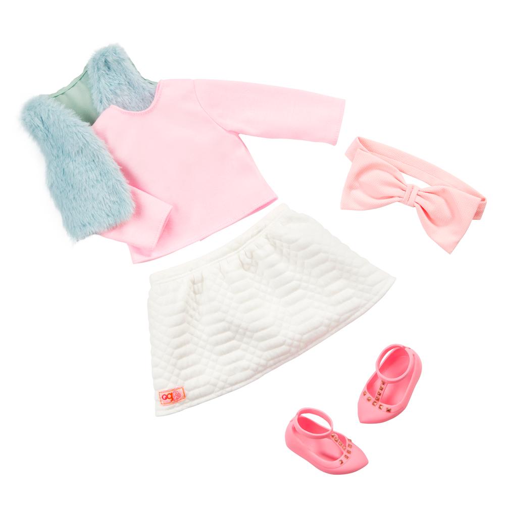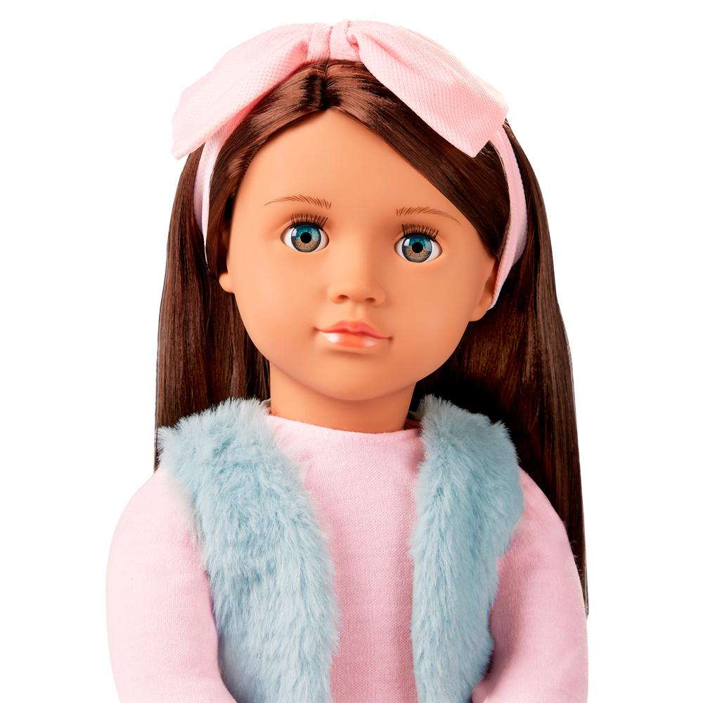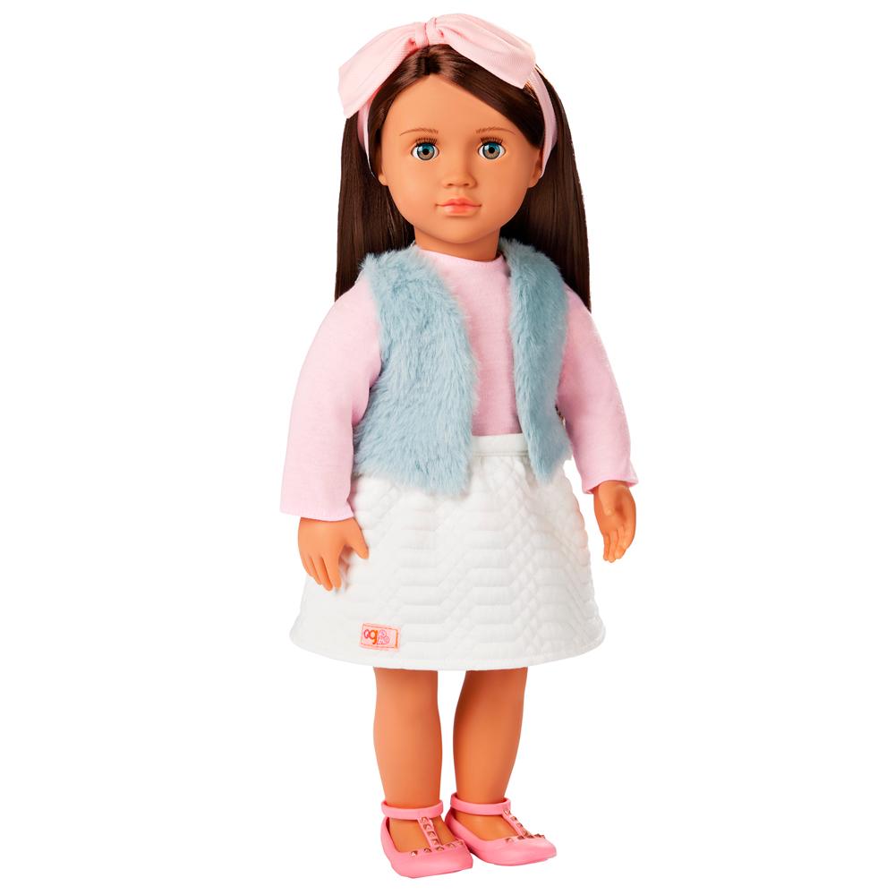 A Boneca Our Generation Paulina encanta com seu visual delicado e moderno! Ela veste uma blusa rosa suave, colete azul de pelúcia, saia branca texturizada e sapatilhas rosa, além de um laço rosa na cabeça que completa o look com charme. Com 46 cm, corpo articulado e cabelos lisos castanhos ideais para pentear, Paulina é perfeita para estimular a imaginação e o faz de conta.Feita com materiais de alta qualidade e compatível com todos os acessórios da linha Our Generation, Paulina é a companhia ideal para criar histórias cheias de estilo, amizade e diversão. Ideal para crianças que adoram moda, criatividade e brincadeiras sem fim!