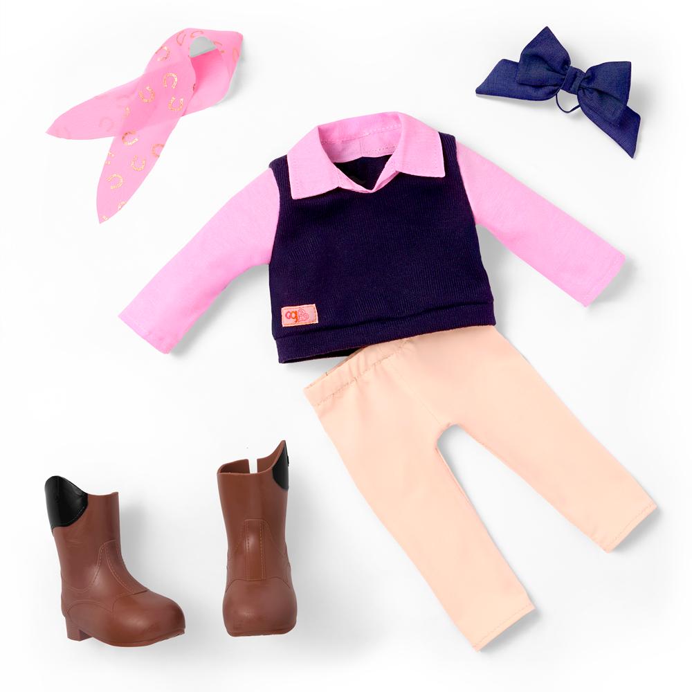 Explore o mundo da equitação com a boneca Our Generation Presley! Com um look sofisticado e inspirado no universo equestre, Presley está pronta para viver aventuras incríveis nas trilhas e nos estábulos. Ela veste uma elegante camisa rosa combinada com um colete azul-marinho, calça bege de montaria e botas marrons resistentes — um visual clássico e cheio de estilo para quem ama cavalos. O laço no cabelo dá um toque final delicado à sua personalidade charmosa.Com 46 cm de altura, corpo articulado e detalhes realistas como olhos expressivos e cabelos longos para pentear, Presley estimula brincadeiras criativas e cheias de imaginação. Compatível com cavalos, acessórios e roupas da linha Our Generation, ela é a companhia ideal para quem sonha em explorar o mundo equestre com autenticidade, moda e muita diversão!