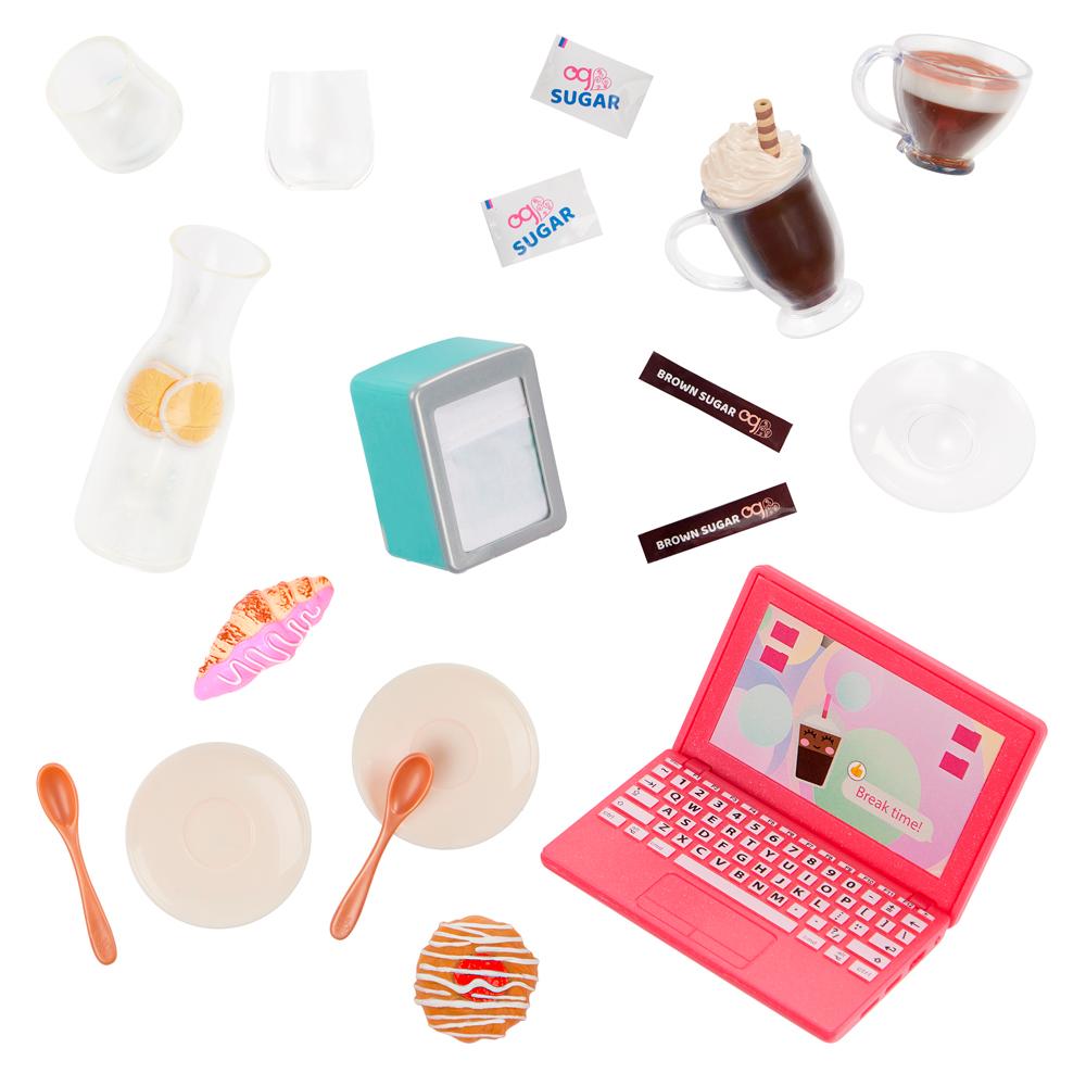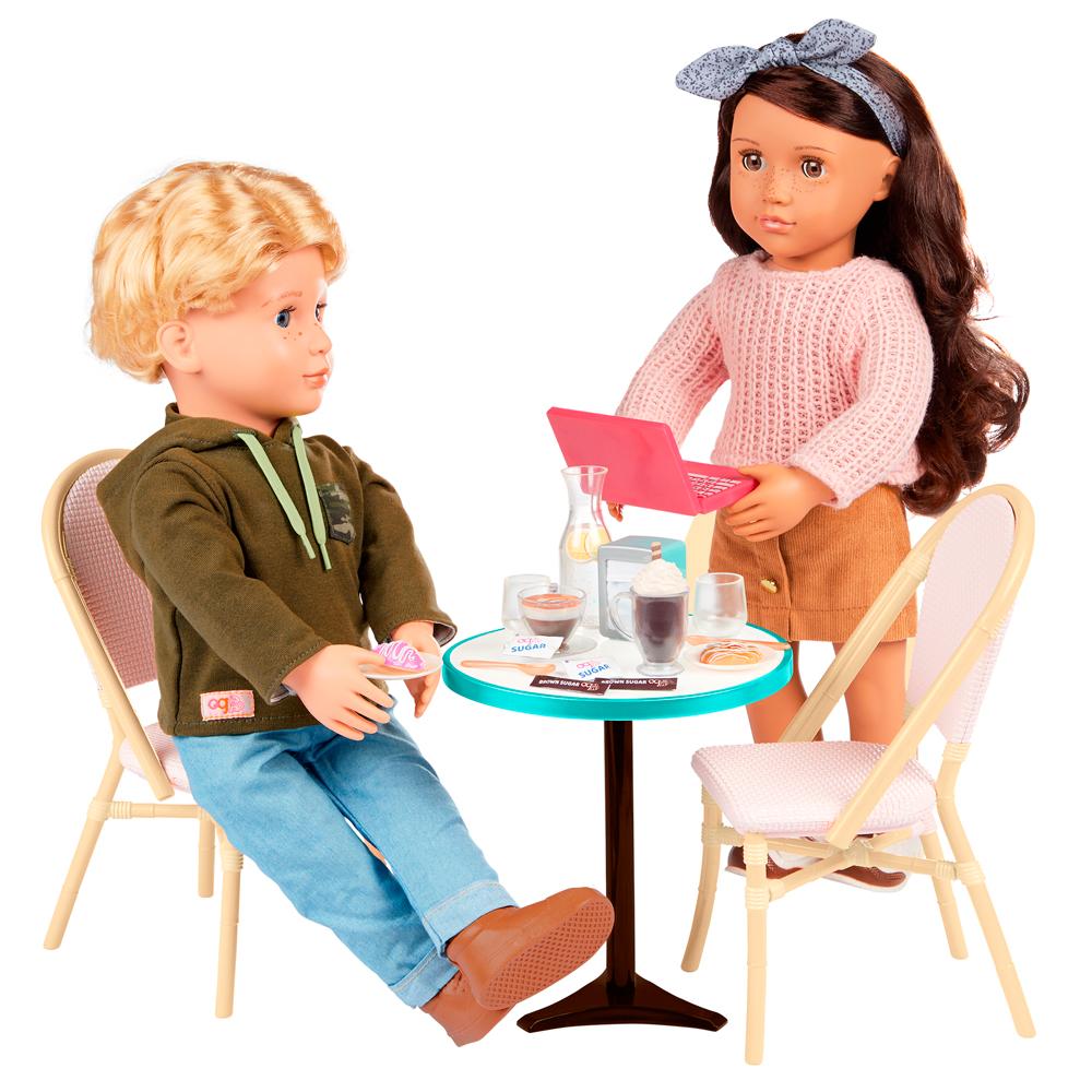 Transforme as brincadeiras em verdadeiras experiências com o Conjunto de Mesa de Bistrô Our Generation! Perfeito para momentos de café, lanchinhos ou reuniões criativas, esse kit encantador inclui uma linda mesa redonda com acabamento em turquesa, duas cadeiras com design clássico e diversos acessórios realistas para um cenário completo.Com itens como xícaras, pratos, talheres, copos, jarra de limonada, doces, laptop, sachês de açúcar, guardanapo e bebidas decorativas, esse conjunto estimula a imaginação e o faz de conta com riqueza de detalhes. Ideal para complementar a coleção da sua boneca Our Generation ou para criar um mini café em qualquer cantinho.