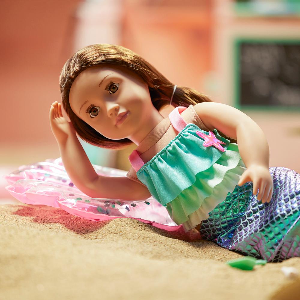Mergulhe no mundo da fantasia com o Conjunto de Roupa de Sereia Our Generation, especialmente desenvolvido para bonecas de 46 cm. Este conjunto encantador transforma qualquer boneca em uma sereia deslumbrante, com uma cauda brilhante que imita as escamas cintilantes do mar, combinada com um top de maiô delicado e com babados que trazem ainda mais charme ao visual. Completo com acessórios temáticos, como um enfeite de estrela-do-mar para o cabelo que adere facilmente, um castelo de areia detalhado, pá e ancinho para a praia, além de uma boia inflável em formato de concha com glitter que garante horas de diversão imaginativa.Perfeito para estimular a criatividade e as brincadeiras de faz-de-conta, esse conjunto é fácil de vestir e compatível com a maioria das bonecas Our Generation de 46 cm e seus acessórios. Traga brilho, magia e muito estilo para o guarda-roupa da sua boneca com esse kit cheio de charme e diversão!
