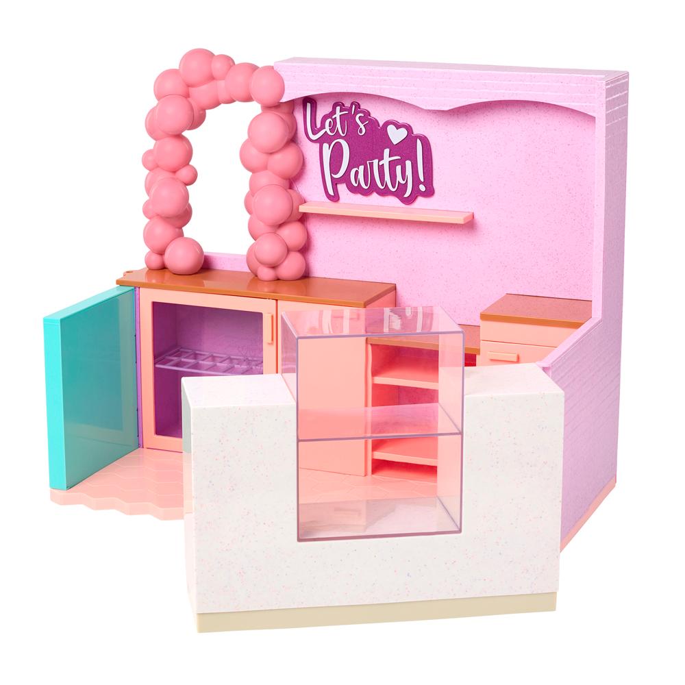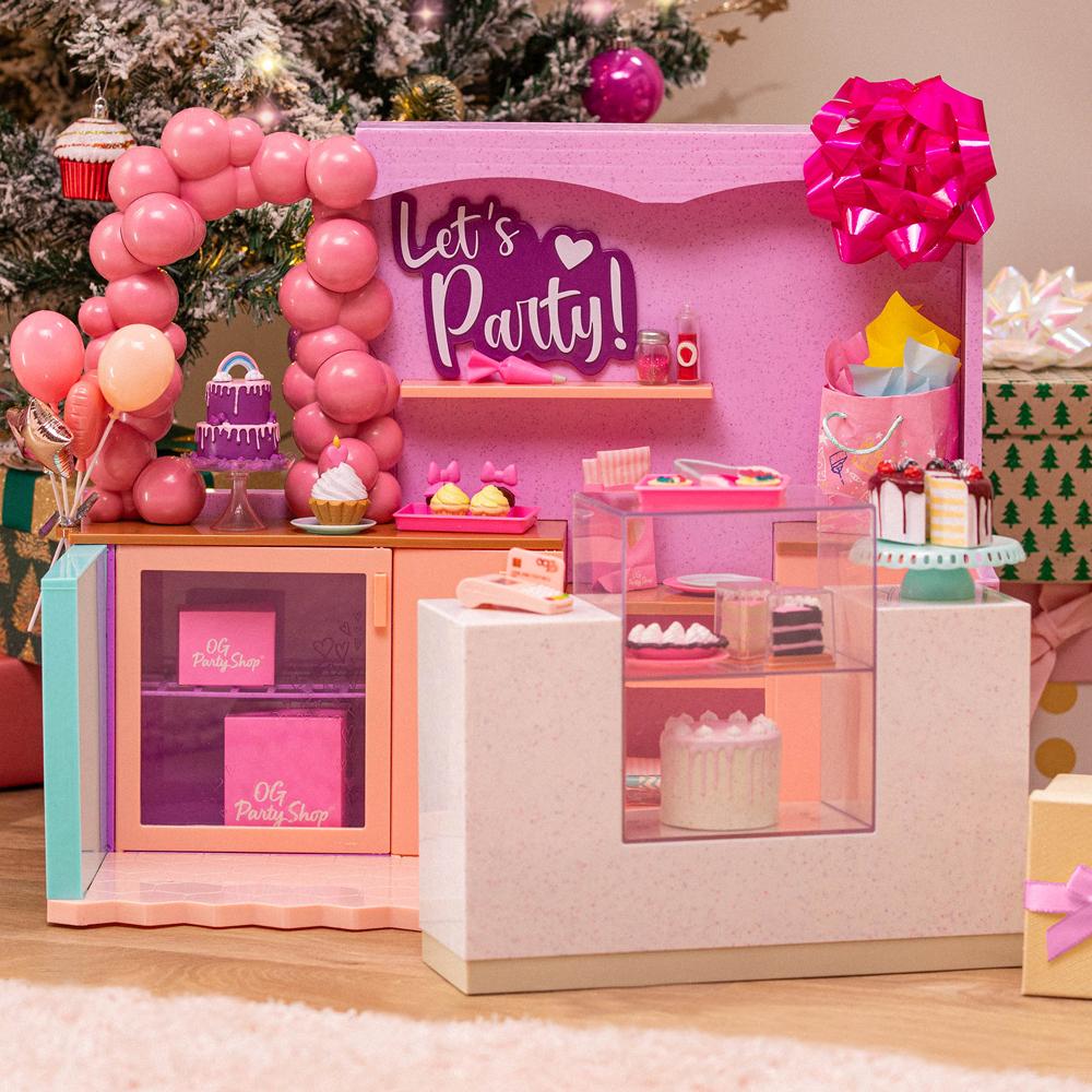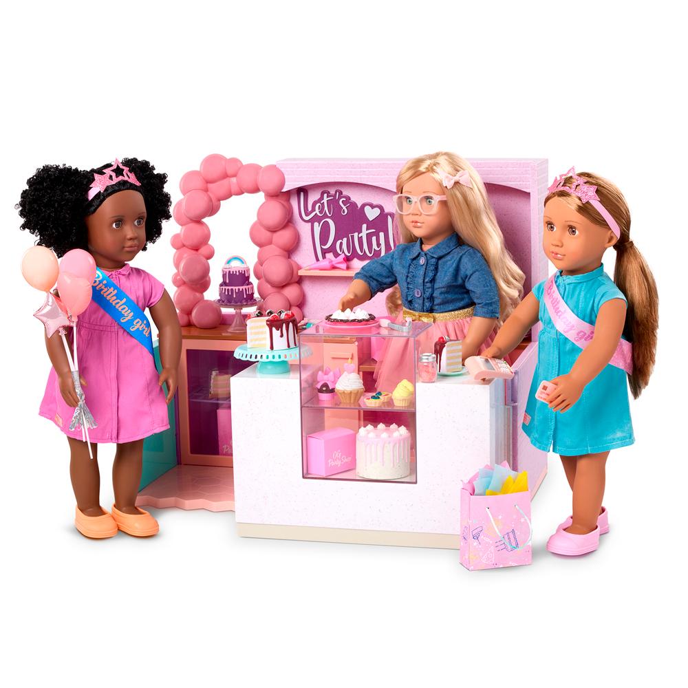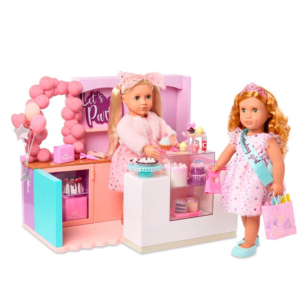 A Loja de Festas Our Generation transforma qualquer momento em uma celebração inesquecível! Com cores vibrantes e um charmoso arco de balões rosa, este playset para bonecas de 46 cm oferece tudo para criar festas incríveis, com mais de 15 deliciosos itens de sobremesa, incluindo cupcakes, tortas e um bolo com cheiro real de chocolate. A mini geladeira, prateleira e balcão retrátil garantem um espaço perfeito para expor e servir as guloseimas. Completo com saco de confeitar, xarope de morango, caixas para levar e um terminal de pagamento com cartão, o playset traz diversão e realismo para as brincadeiras. Ideal para estimular a imaginação e a criatividade, a Loja de Festas Our Generation é o presente perfeito para pequenos anfitriões apaixonados por festas e doces.
