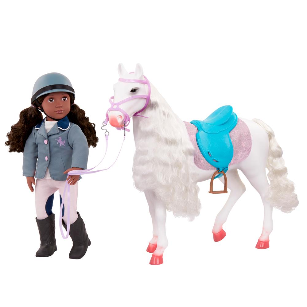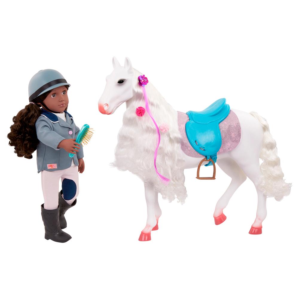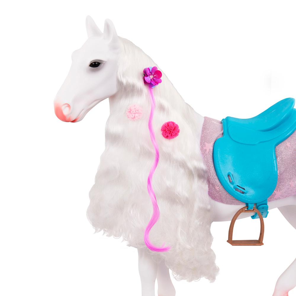 Solte a criatividade com o Cavalo Our Generation Camarillo Hair Play, o companheiro perfeito para aventuras cheias de estilo! Com uma linda crina branca extra longa e cauda sedosa, este cavalo de brinquedo de 50 cm foi feito para ser escovado, penteado e enfeitado com os acessórios inclusos — como pompons coloridos e extensão floral. Ideal para crianças que amam brincar de cabeleireiro e criar visuais incríveis!Compatível com as bonecas Our Generation de 46 cm, o Camarillo vem com sela, manta, rédeas, escova de cabelo e um guia de penteados para inspirar brincadeiras criativas. Com design realista e acabamento encantador, ele transforma qualquer brincadeira em uma verdadeira aventura equestre com muito charme.