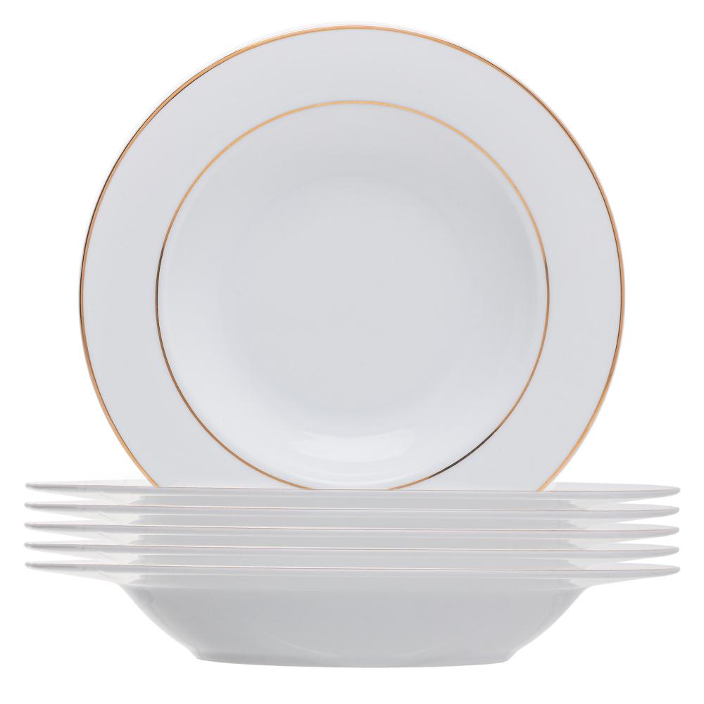 6 Pratos Fundos Wolff de Porcelana com Fio de Ouro