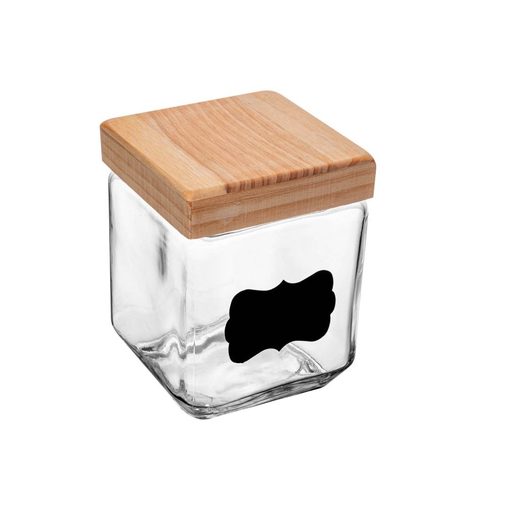 Porta Mantimento de Vidro com Tampa de Pinus e Adesivo 1,2L