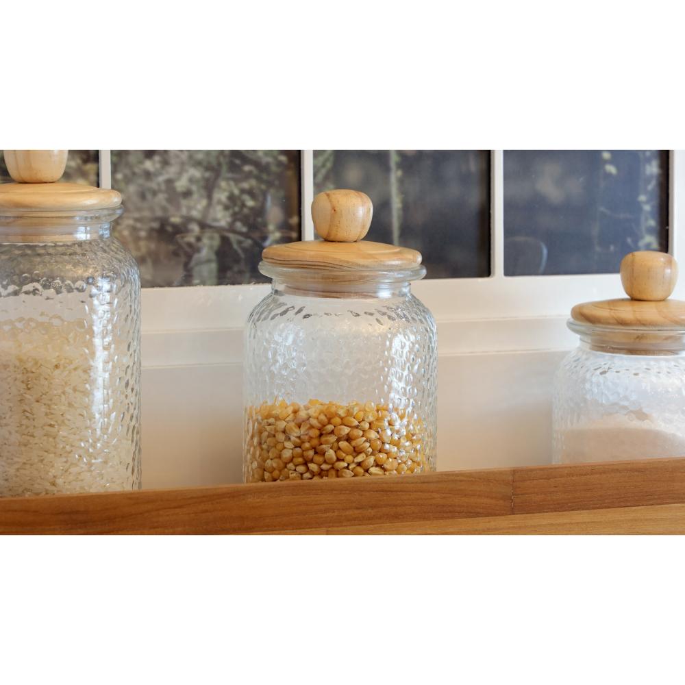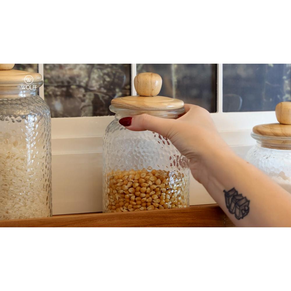 Porta Mantimento de Vidro Martelado com Tampa de Bambu 1L