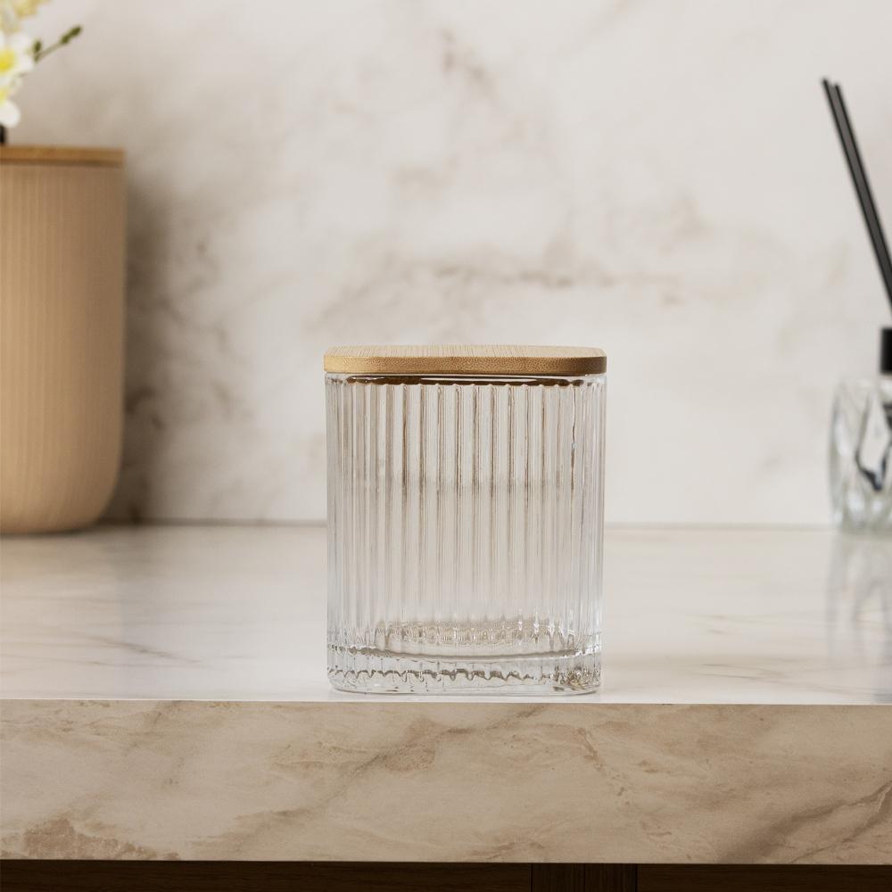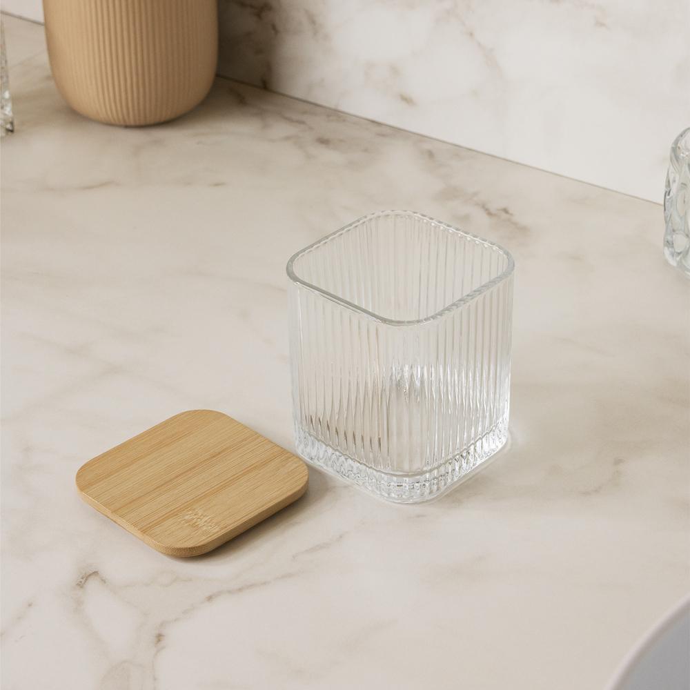 Porta Cotonete e Algodão Lyor Vidro e Tampa de Bambu Lines