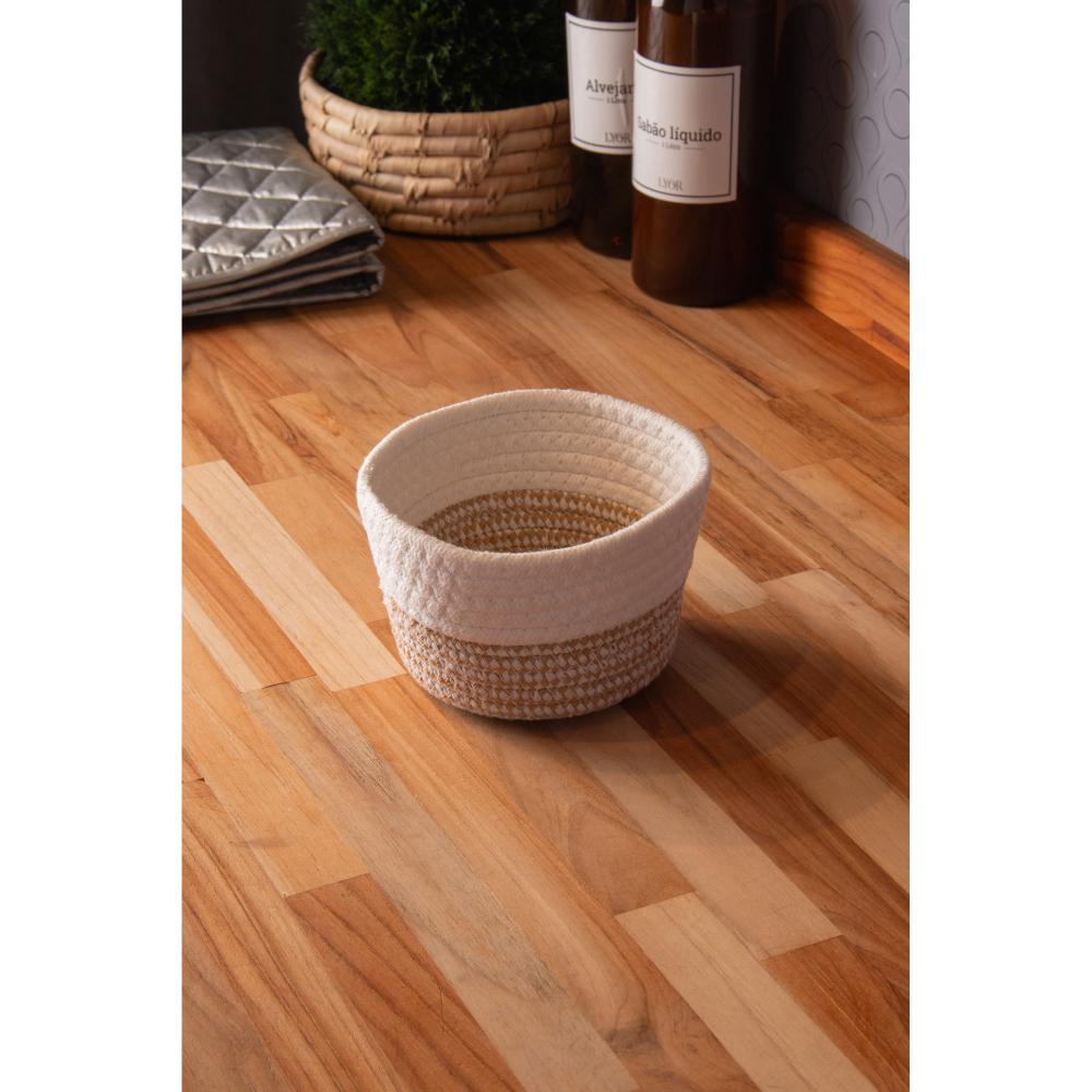 Cesta Lyor 15cm x 15cm x 9cm Bege/Branca Poliéster