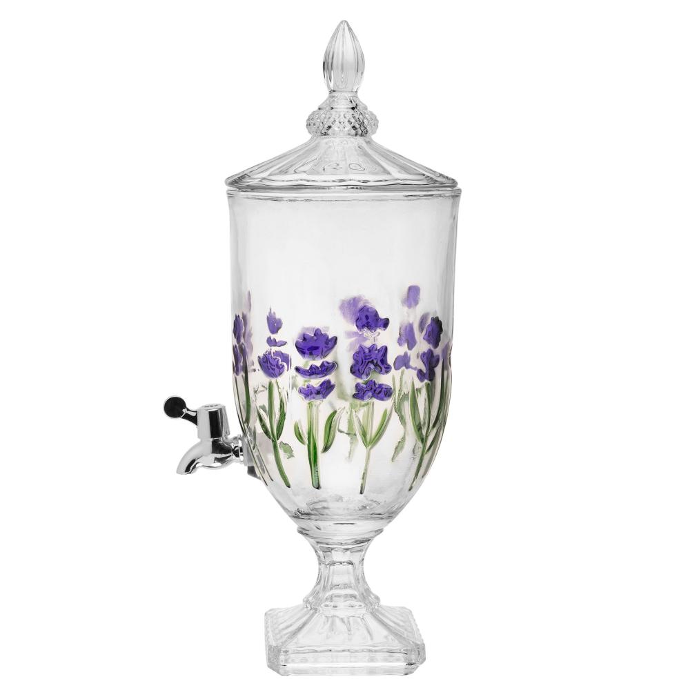Suqueira com Pé e Tampa Lavanda Hand Painting 4,5L Cristal