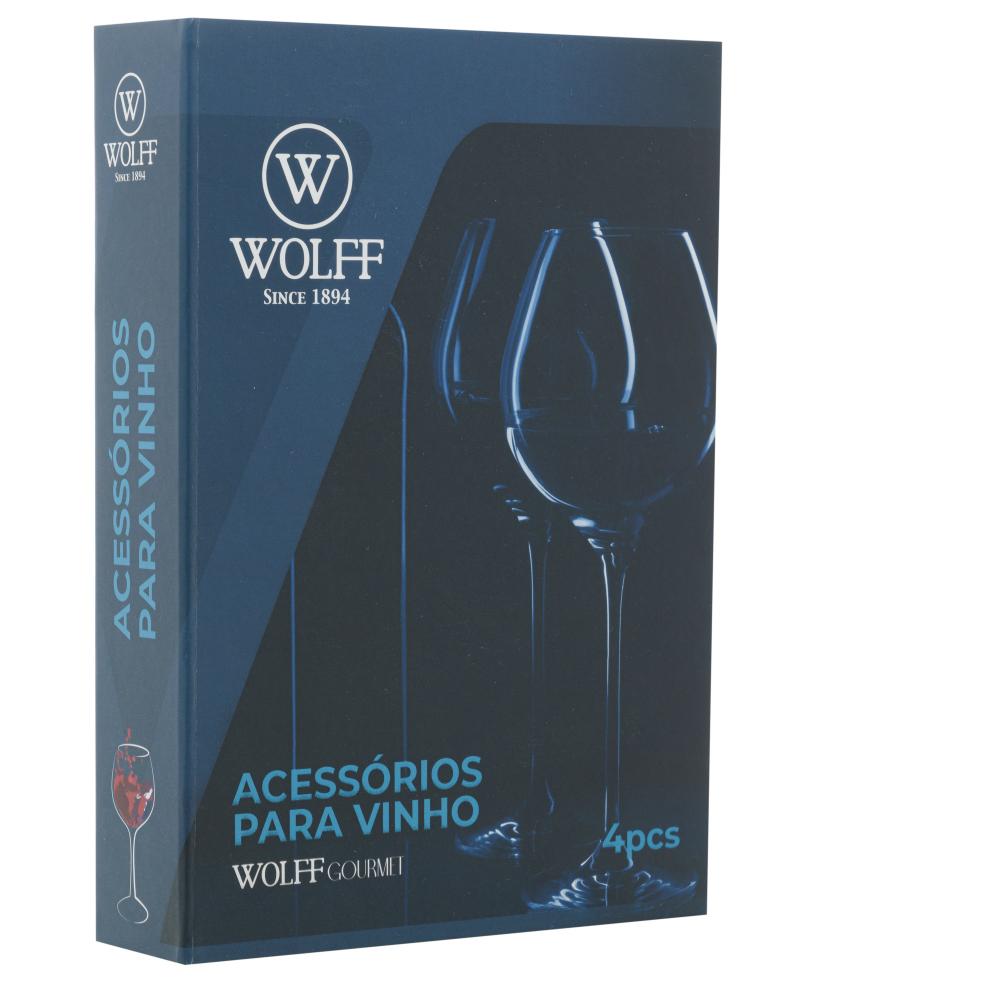 4 Peças para Vinho com Caixa Wolff de Aço Inox