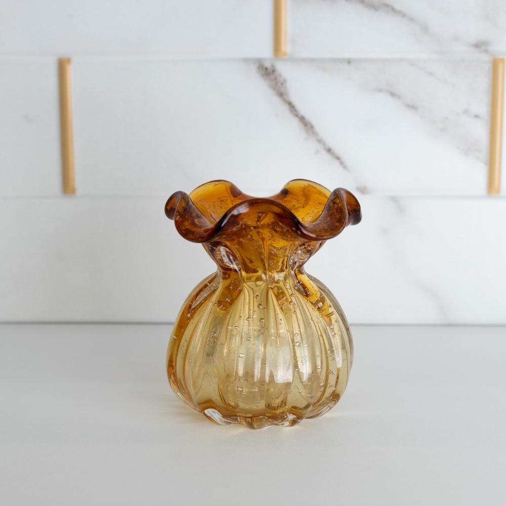 Vaso Wolff Italy de Vidro Âmbar 10cm x 11cm