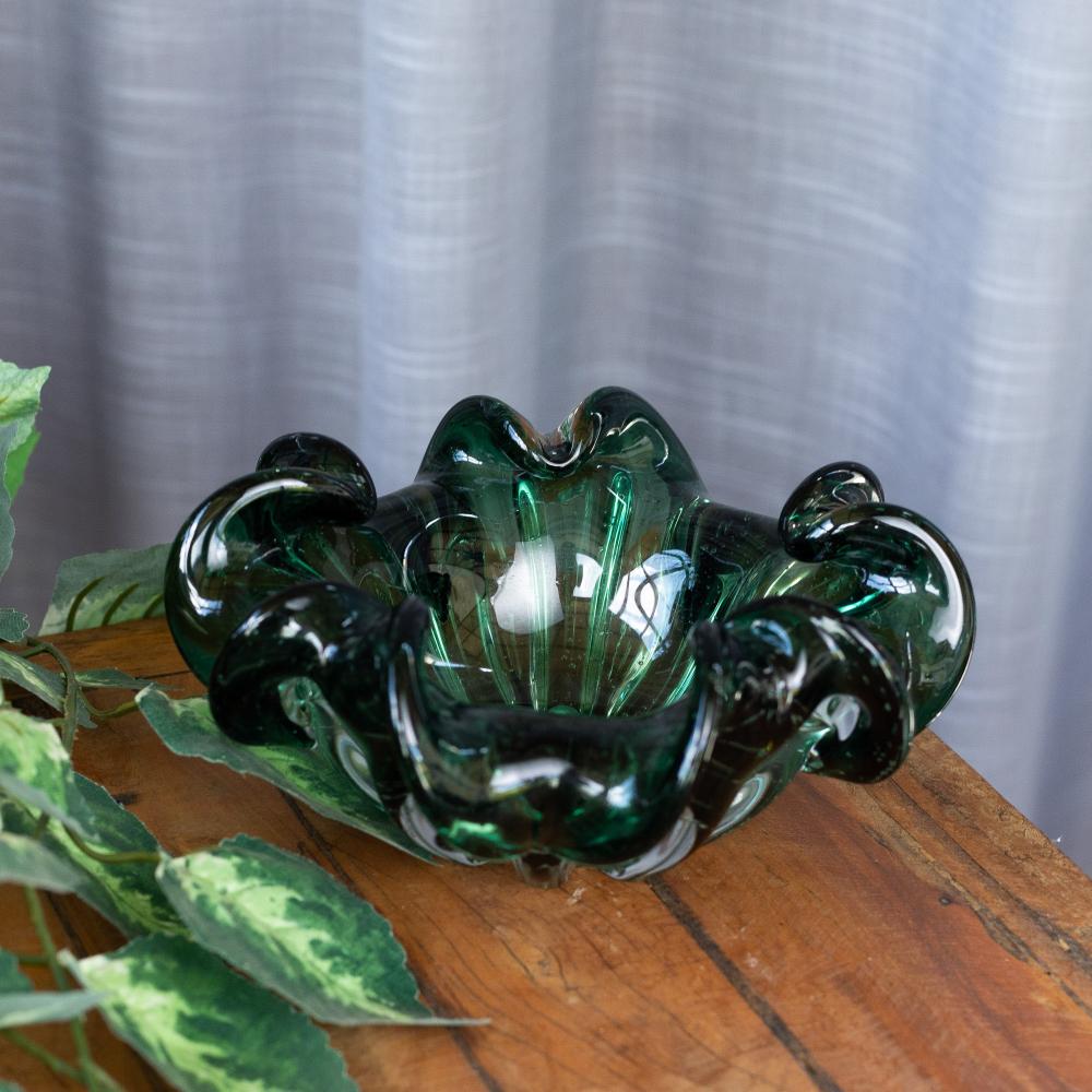 Centro de Mesa Wolff Italy de Vidro Verde Esmeralda 21cm