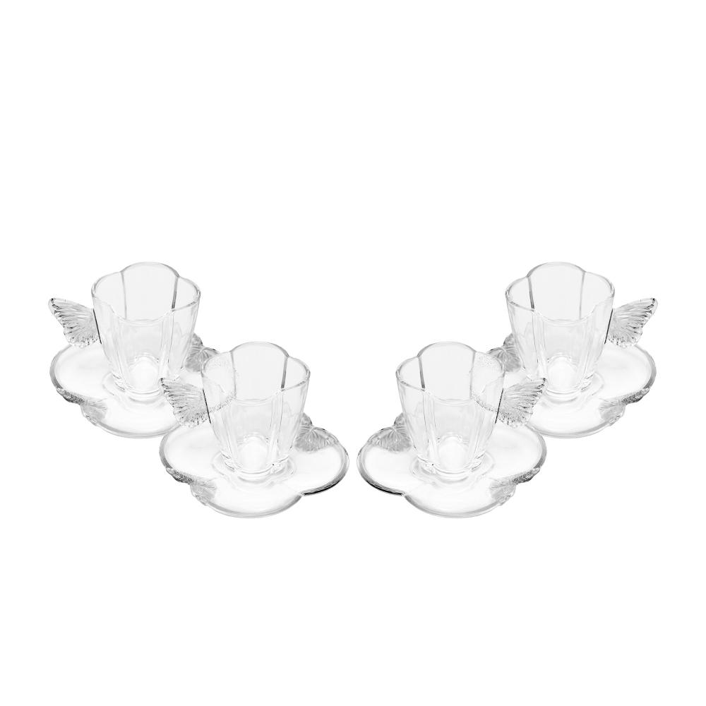 4 Xícaras Wolff de Café de Vidro com Pires Butterfly