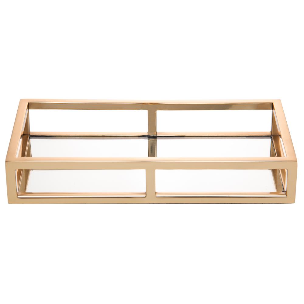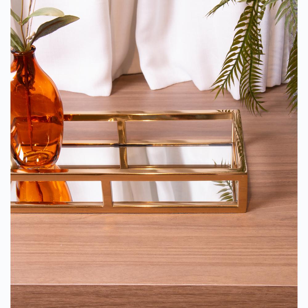 Bandeja com Espelho Wolff de Aço Inox Dourada 30cm x 15cm