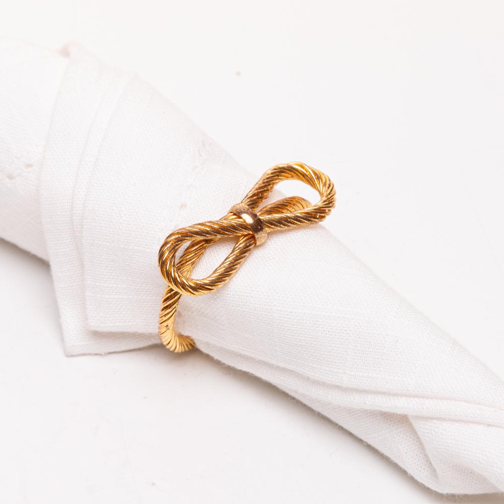 4 Anéis para Guardanapos Wolff Laço Dourado de Metal 5,5cm