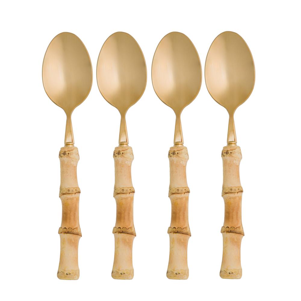 4 Colheres Sobremesa Wolff Bambu Tulum Aço Inox Dourado 16cm