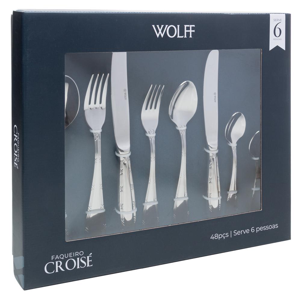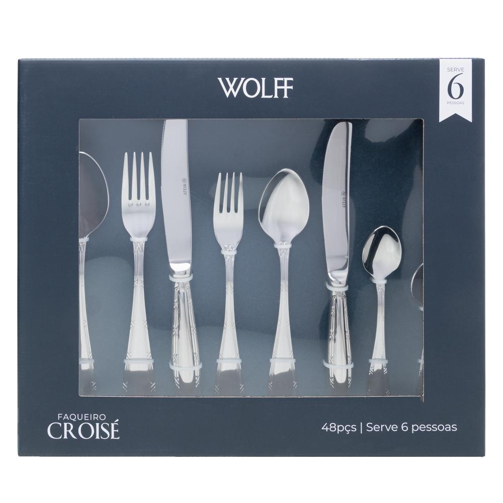 Faqueiro 48 Peças Wolff Croisé com Caixa Litografada Aço Ino