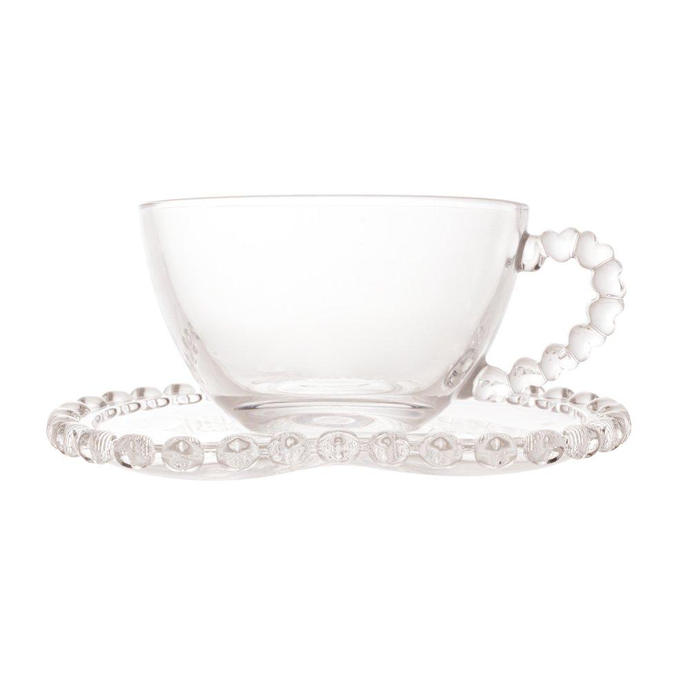 Xícara de Chá com Pires Lyor Coração de Cristal 170ml