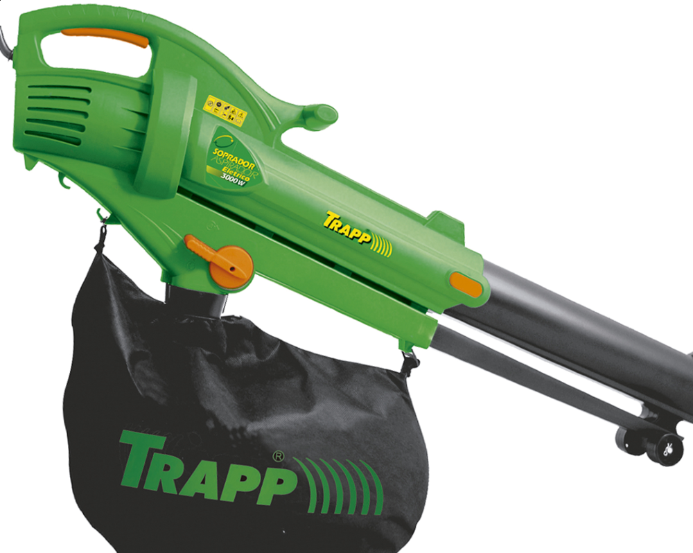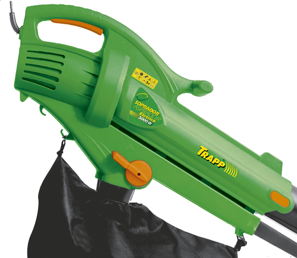 CARACTERÍSTICAS E DIFERENCIAIS Conheça detalhes que garantem um melhor desempenho, mais eficiência e versatilidade do soprador/aspirador TRAPP.Possui sistema de segurança que permite ligar o equipamento somente com o tubo telescópico totalmente encaixado.Trava para extensão elétrica.Alavanca reversora.Rodas para apoiar o equipamento no solo.Suporte para os ombros.Saco recolhedor de 32 litros.Fácil limpeza do saco de detritos.Motor de escovas.Garantia: 6 meses (3 meses garantia legal, 3 meses garantia especial TRAPP).Atenção: Não aspirar resíduos sólidos, como pedras, vidros, ossos, pó, etc. FICHA TÉCNICA Potência (W): 3.000Tensão: 127VTipo: MonoCapacidade do Saco de Detritos: 32 litrosRazão de Fragmentação: 10: 1Velocidade do Ar: 270 km/hPeso líquido (kg): 4,630Nível de Pressão Sonora: 76,8 dB(A)Vibração: 1,329 mm/s