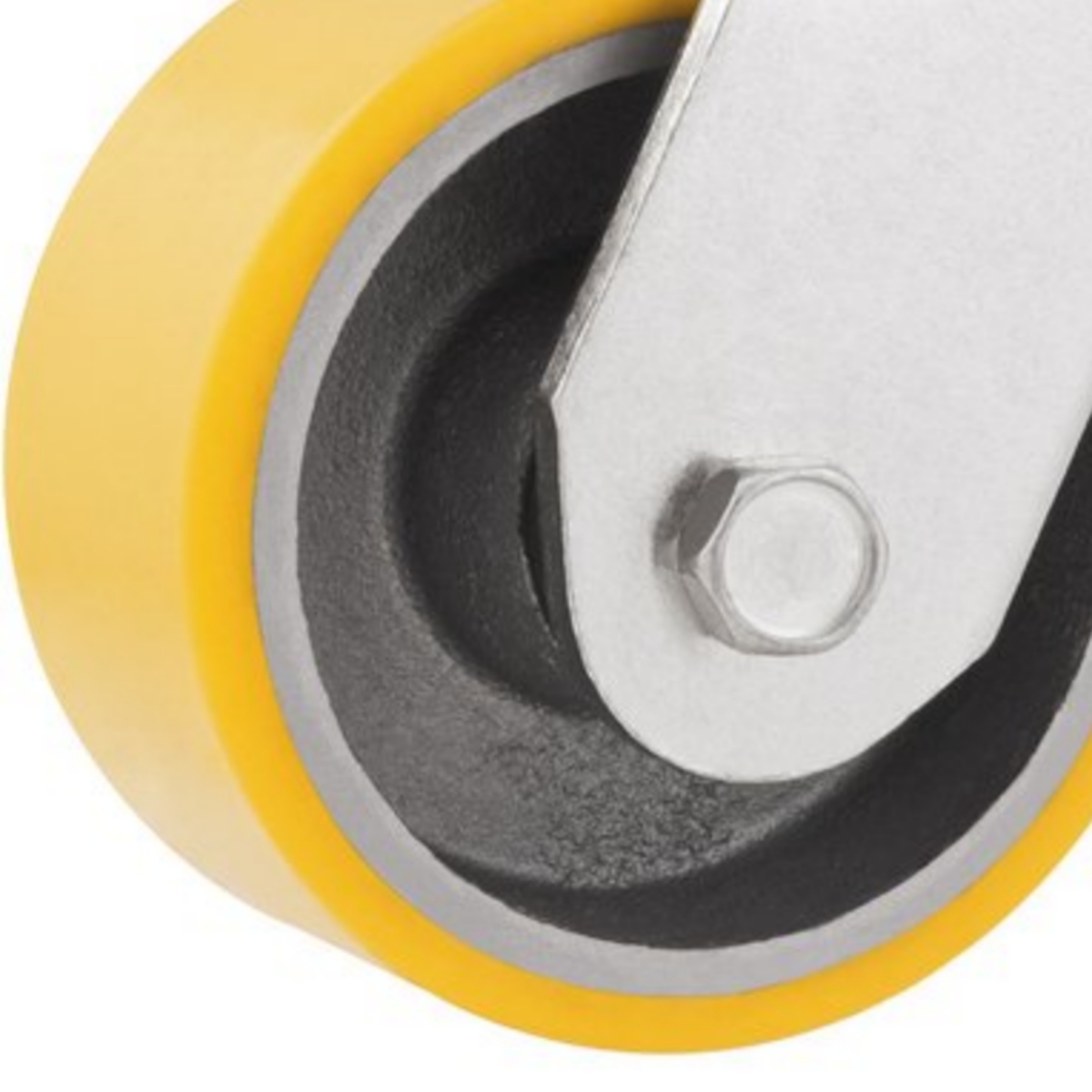 Conteúdo da embalagem1 RodízioAplicações e dicas de usoIndicado para movimentação de móveis, bancadas, carrinhos, máquinas e equipamentos em pisos com bom estado de conservaçãoDestaques e diferenciaisFacilita a movimentação e a manobra. Mais silencioso e não marca o piso. Excelente resistência. DETALHES TÉCNICOS Diâmetro da roda.: 8" - 203 mm Largura da roda: 50,0 mm Diâmetro do eixo da roda.: 19,0 mm Capacidade de carga do rodízio: 350 kg Material da roda.: Ferro fundido + poliuretano Cor da roda: Amarelo Material da base do rodízio: Chapa de aço zincada Tipo do eixo da roda: Com rolete Tipo de base do rodízio: Tipo mesa Tipo de freio do rodízio: Sem freio Tipo de roda do rodízio: Simples
