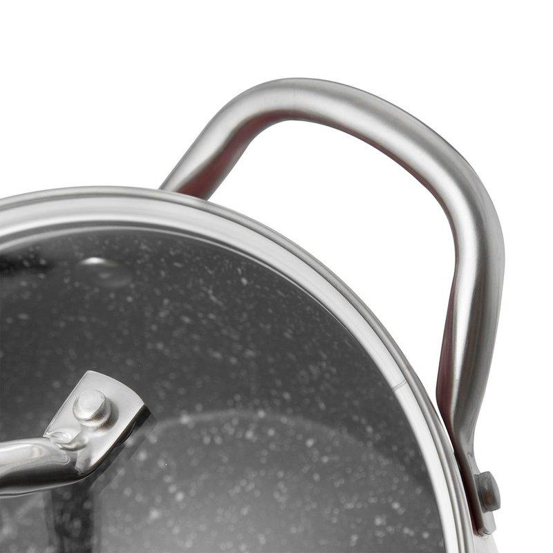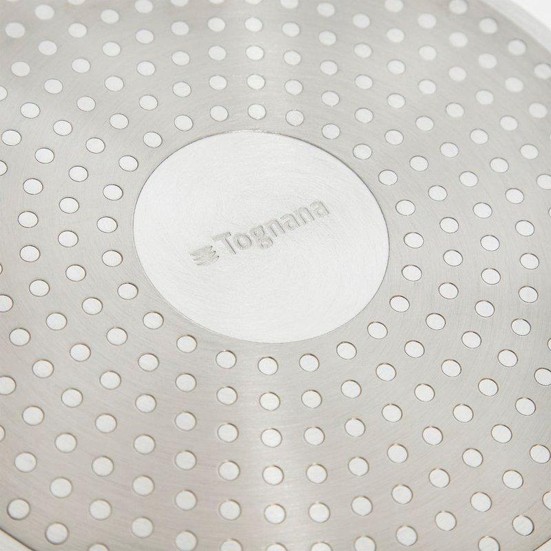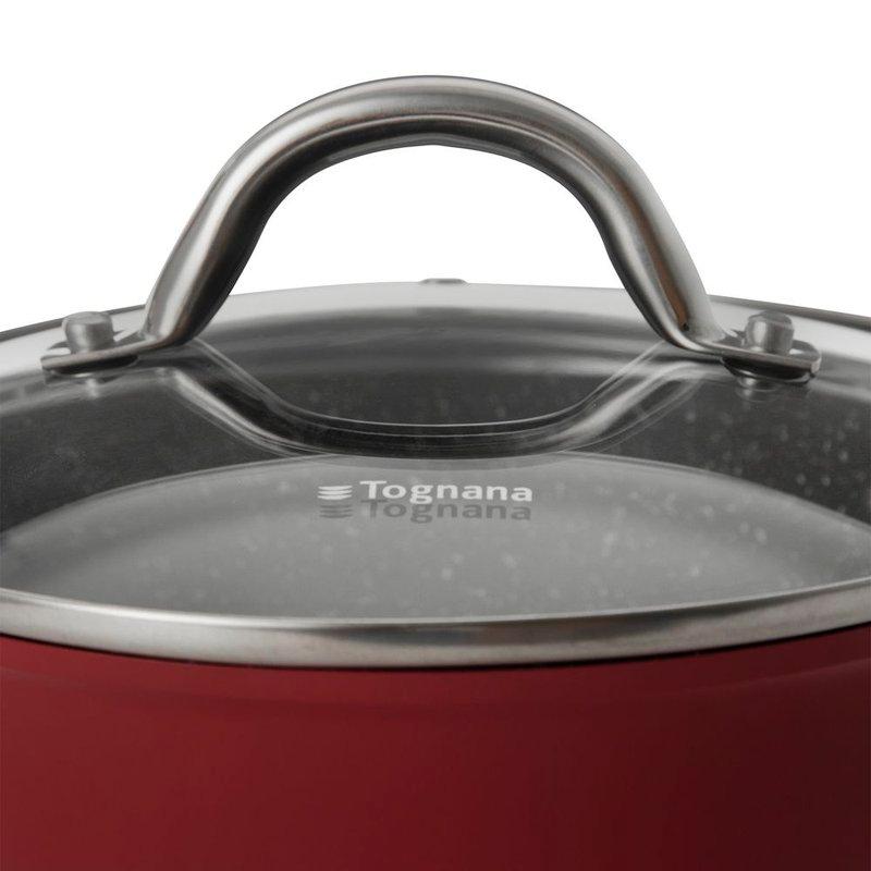 Sinônimo de praticidade para a cozinha, o Jogo de Panelas Steel Marble é composto por peças sólidas e duráveis que impressionam pela estrutura e acabamento. É produzido em alumínio forjado, que traz durabilidade, garantindo maior tempo de vida útil aos itens. A tampa em vidro borossilicato, conta com borda de acabamento em aço inoxidável assim como as alças laterais e cabo. Contém 1 panela com tampa 16cm - 1 L - Ø indução 16,5 cm 1 caçarola com tampa 20cm - 2,3 L - Ø indução 11,5 cm 1 caçarola com tampa 24cm - 5,5 L - Ø indução 14,5 cm 1 frigideira 24cm - 1,7 L - Ø indução 16 cm Características Espessura da panela: 3 mm Adequado para fogão: indução, gás, elétrico e vitrocerâmico O fogão por indução funciona através da indução de ondas eletromagnéticas. Seu funcionamento ideal depende da escolha de panelas adequadas. Para garantir a compatibilidade, é importante verificar qual o diâmetro mínimo indicado no manual do fogão. Cuidados Untar com um pouco de óleo antes de cozinhar Deixar de molho facilita a limpeza Não utilize produtos abrasivos Para conservar o tratamento antiaderente, manipule os alimentos com utensílios de madeira, nylon ou silicone Não vai ao forno Não vai à lava-louças A Tognana é uma empresa comprometida com padrões técnicos rigorosos, atendendo aos parâmetros específicos para processos e materiais adequados, além de utilizar tecnologias que garantem a conformidade com as normas de produção de alta qualidade. Com boas práticas que promovem a preservação ambiental e uma gestão transparente, a empresa valoriza o uso consciente de recursos, buscando gerar impacto positivo no meio ambiente e na comunidade. Camicado, casa com seu estilo!