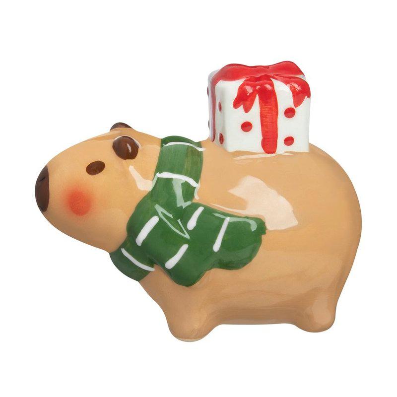 ADORNO CAPIVARA HOLIDAY PRESENTE 7 CM SAZ HOME STYLE