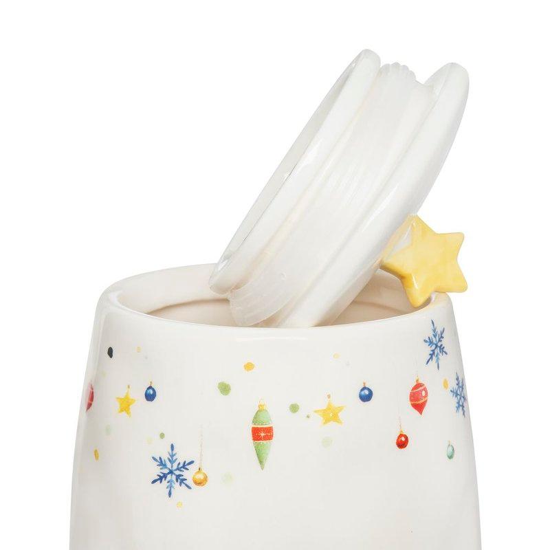 O Potiche Merry tem 21 cm e é produzido em cerâmica, com detalhes pintados à mão e vedação em silicone. A pega em forma de estrela acrescenta um charme encantador para peça. Prepare a casa com a coleção de Natal inspirada na magia e conforto dessa data tão festiva e crie cenários lúdicos com os famosos e tradicionais personagens que dão vida a esse momento especial. Reúna o papai Noel em uma vila com renas, bonecos de neve com divertidos cachorrinhos, passarinhos e capivaras fofas! Preencha sua decoração com personalidade e espírito de celebração que essa data nos convida para criar momentos encantadores. Cuidados: prefira realizar limpeza com pano seco e macio. Com a marca exclusiva Home Style, a Camicado transforma cada ambiente da sua casa, oferecendo praticidade, estilo e aconchego. Sinta o prazer de viver bem, no seu tempo e do seu jeito. Experimente a textura que acolhe, o design que encanta, e a organização que simplifica. Cada detalhe do Potiche Home Style Merry foi pensado para inspirar você a criar o seu lugar favorito do mundo. Descubra os produtos Home Style e viva bem com estilo! Camicado, casa com o seu estilo.