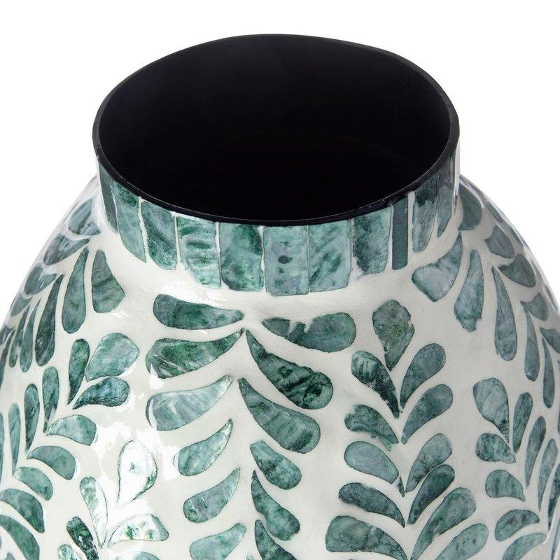 O Vaso Folhagem tem 35 cm e cada peça tem um padrão único. Produzido em bambu é revestido por uma massa e madrepérolas no tom esverdeado e off white que formam a padronagem de folhagens. Ideal para ser usado com plantas artificiais e criar uma composição que se destaque no ambiente. Cuidados: realizar limpeza com pano seco e macio. Não molhar ou utilizar água no vaso para que sua estrutura não danifique. Com a marca exclusiva Home Style, a Camicado transforma cada ambiente da sua casa, oferecendo praticidade, estilo e aconchego. Sinta o prazer de viver bem, no seu tempo e do seu jeito. Experimente a textura que acolhe, o design que encanta, e a organização que simplifica. Cada detalhe do Vaso Luro foi pensado para inspirar você a criar o seu lugar favorito do mundo. Descubra os produtos Home Style e viva bem com estilo! Camicado, casa com o seu estilo.