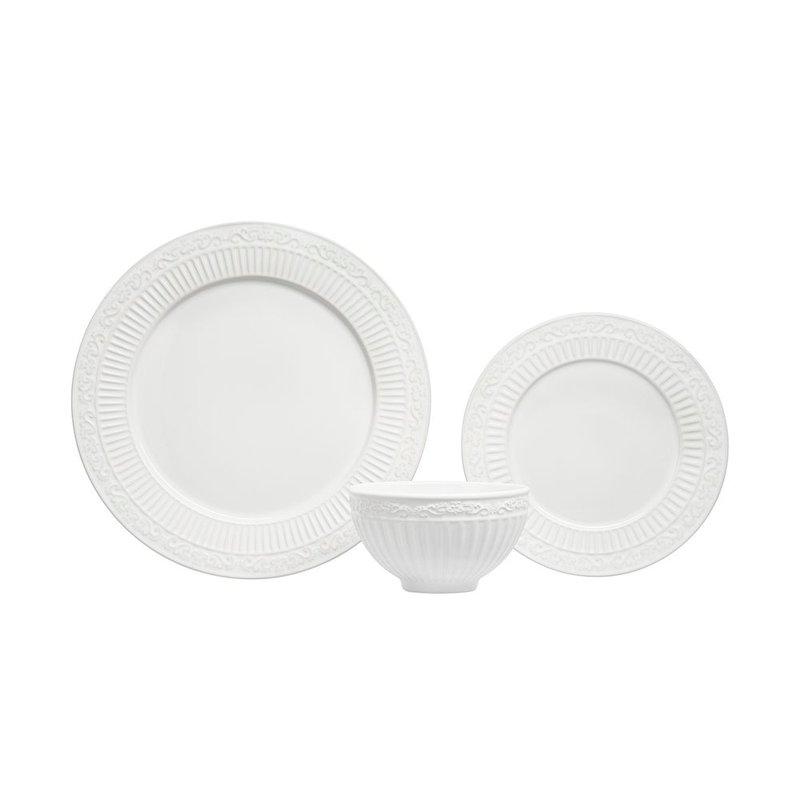 O aparelho de Jantar Elise conta com 12 peças, servindo até 4 pessoas. As peças são confeccionadas em cerâmica, com design clássico, as bordas são rasas e retas com textura canelada e arabescos, que proporciona elegância à mesa-posta. Cuidados Vai a lava louças vai ao micro-ondas não vai ao forno. Contém - 04 pratos rasos Ø 28 cm - 04 pratos de sobremess Ø 20,5 cm - 04 bowls 300 ml Com a marca exclusiva Home Style, a Camicado transforma cada ambiente da sua casa, oferecendo praticidade, estilo e aconchego. Sinta o prazer de viver bem, no seu tempo e do seu jeito. Experimente a textura que acolhe, o design que encanta, e a organização que simplifica. Cada detalhe do Aparelho de Jantar Elise foi pensado para inspirar você a criar o seu lugar favorito do mundo. Descubra os produtos Home Style e viva bem com estilo! Camicado, casa com o seu estilo!