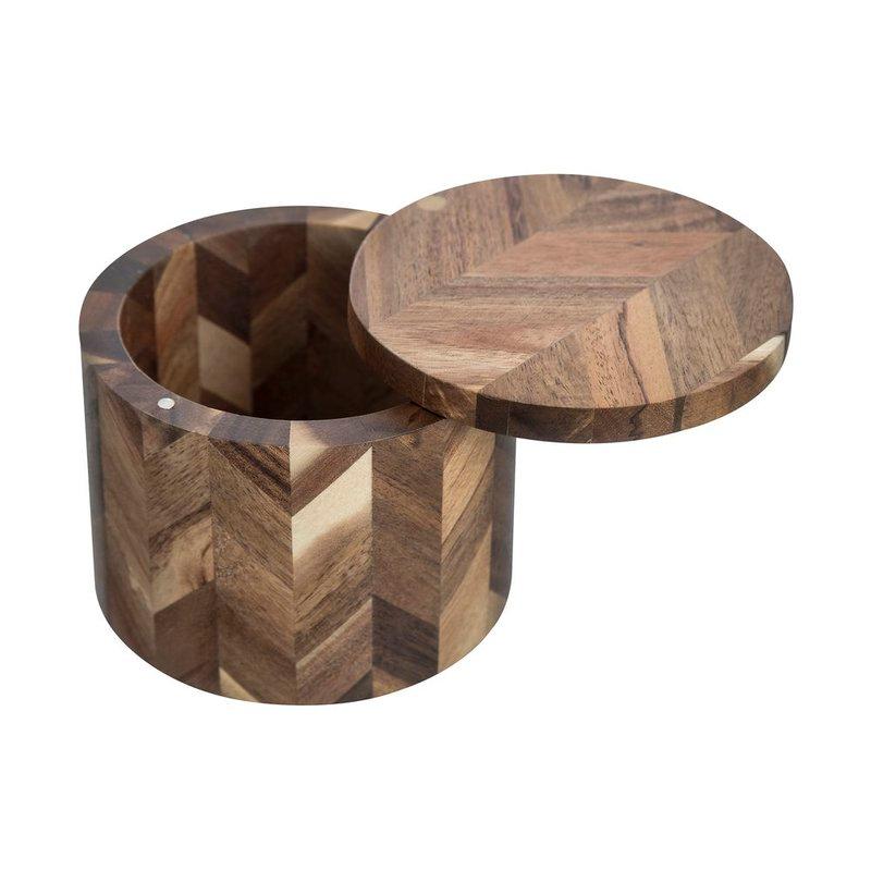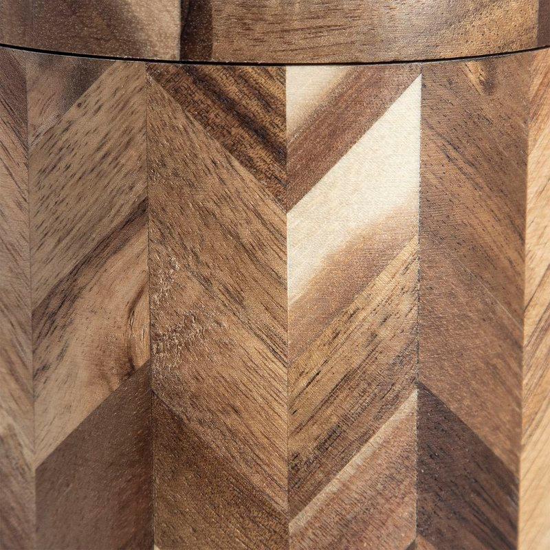 O Saleiro Chevron é artesanal, feito em madeira de acácia com acabamento geométrico em tons de marrom e bege, e tem capacidade para 250 gramas. Seu design cilíndrico e tampa ajustável com imã pivotante, combinam funcionalidade e estilo rústico. Ideal para compor mesas elegantes ou cozinhas com toque natural. Uma peça única que une charme e praticidade. Cuidados Não vai a lava louças Limpar com pano umido Manter seco após o uso Com a marca exclusiva Home Style, a Camicado transforma cada ambiente da sua casa, oferecendo praticidade, estilo e aconchego. Sinta o prazer de viver bem, no seu tempo e do seu jeito. Experimente a textura que acolhe, o design que encanta, e a organização que simplifica. Cada detalhe do Saleiro Chevron foi pensado para inspirar você a criar o seu lugar favorito do mundo. Descubra os produtos Home Style e viva bem com estilo! Camicado, casa com o seu estilo.