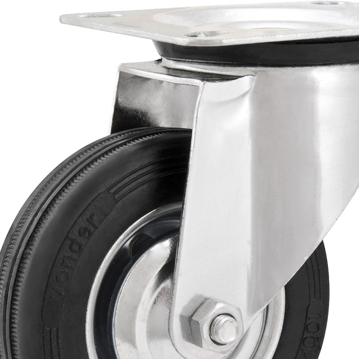 Rodizio Giratório 4'' Leve 60kg Núcleo Chapa Borracha Preta Vonder
