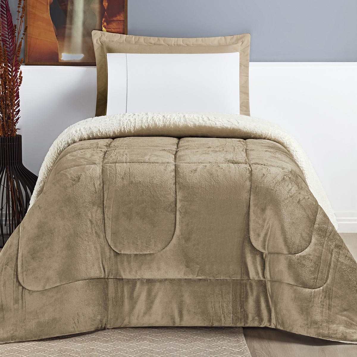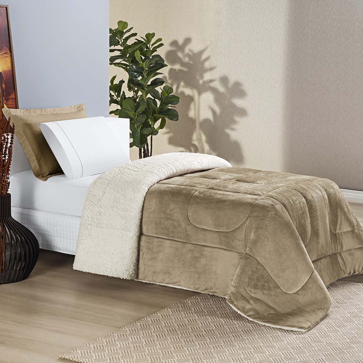 Coberdrom Apollo Solteiro Sherpa Manta Flannel Toque Lã de Carneiro - Bege