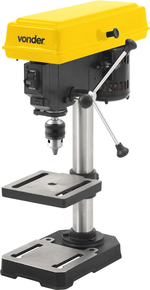 Conteúdo da embalagem1 Furadeira de bancada. Acompanha: motor, mandril, polia e correia k-26Aplicações e dicas de usoIndicada para perfurações em geral. Utilizada em carpintarias, serralherias, oficinas, entre outros.Destaques e diferenciaisEquipada com motor elétrico, cabo de ligação, chave liga/desliga com dispositivo de segurança, mesa giratória inclinável, lâmpada para iluminação da área do furo e alavanca de avanço com 3 braços. Conta com 5 velocidades. DETALHES TÉCNICOS Potência: 1/3 hp Capacidade do mandril da furadeira: 1/2" - 13 mm Profundidade de furação da furadeira: 50 mm Número de velocidades da furadeira: 5 velocidades Rotação da furadeira de bancada: 620 rpm, 1100 rpm, 1720 rpm, 2340 rpm e 3100 rpm Tipo de encaixe do eixo da furadeira: Cone B-16 Tensão (V): 127 V~ Peso aproximado: 20 kg Prazo de garantia: 1 ano