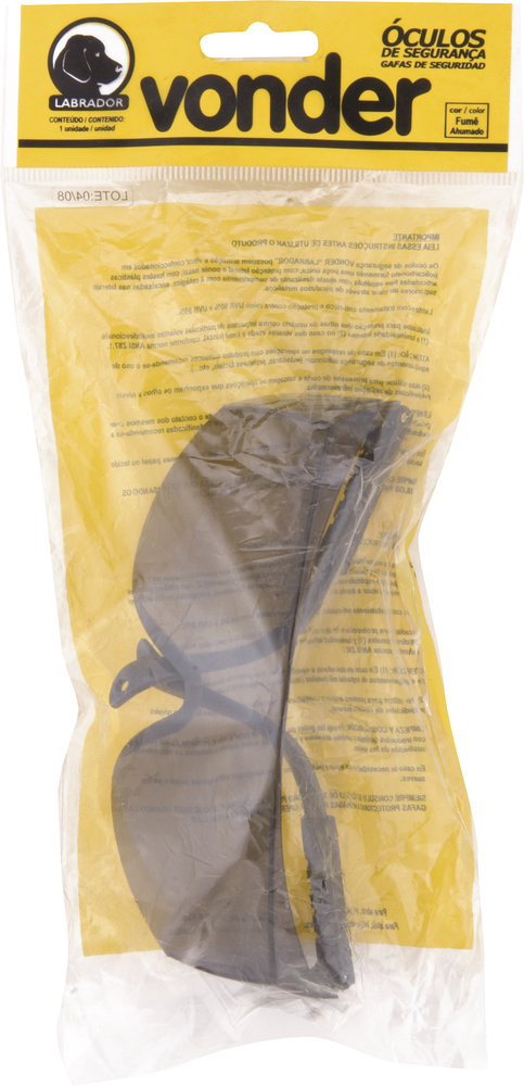 Conteúdo da embalagem1 Óculos de segurançaAplicações e dicas de usoIndicado para proteção dos olhos do usuário contra partículas volantes e para ambientes com alta luminosidadeDestaques e diferenciaisPossui lentes em policarbonato com tratamento anti-risco e proteção contra raios UVA 60% e UVB 95%, proporcionando maior durabilidade e ótima resistência. Produto em conformidade com a norma ANSI Z87.1. DETALHES TÉCNICOS Modelo do óculos de segurança: Labrador Número do Certificado de Aprovação - CA: 15004 Material da lente do óculos de segurança: Policarbonato Cor da lente do óculos de segurança: Fumê (cinza) Material da haste do óculos de segurança: Plástico