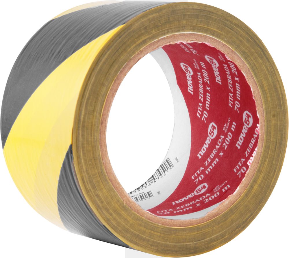 Fita zebrada sem adesivo 70mmx200m amarela e preta - Nove54