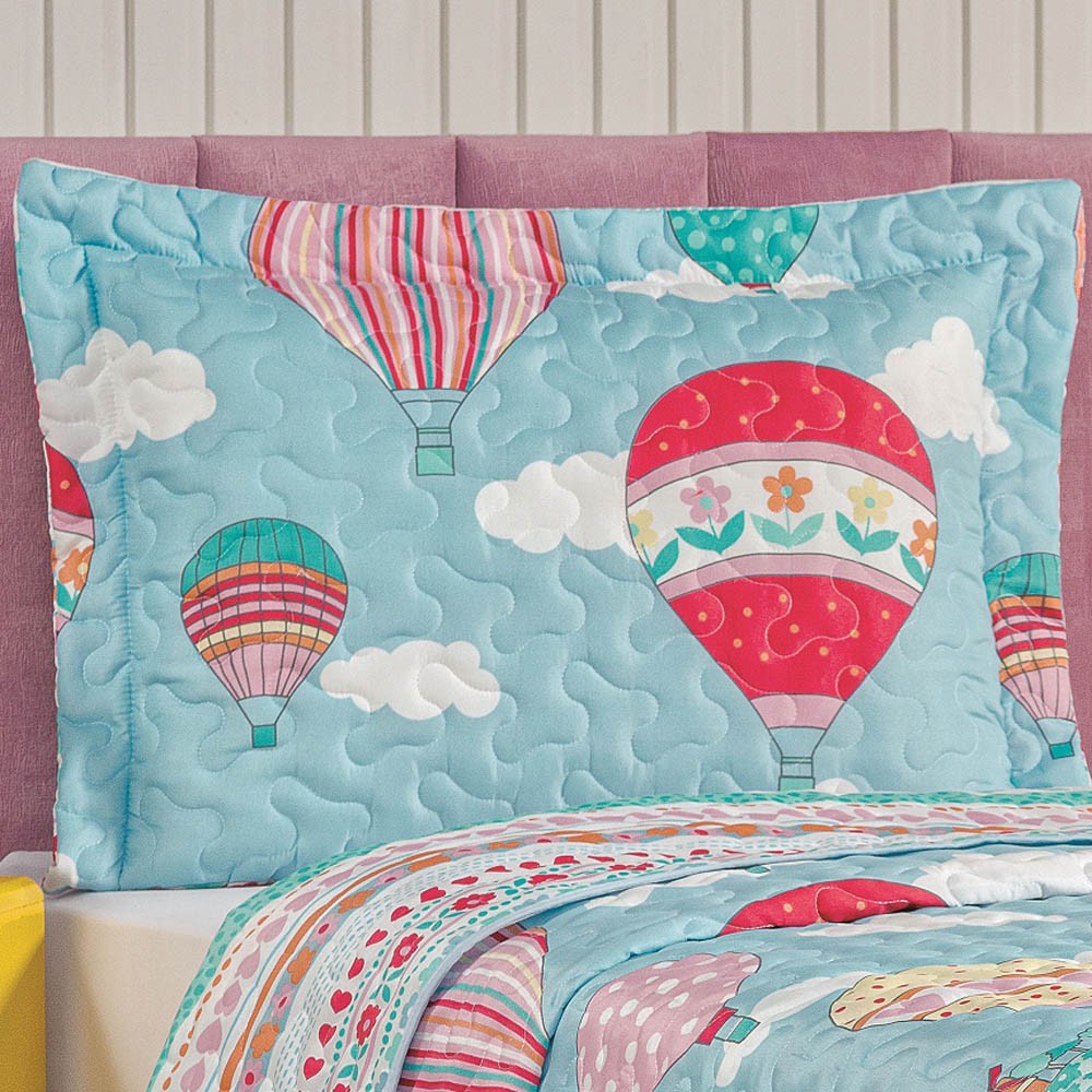 Kit Cobre Leito Colcha Solteiro Infantil Fantasy Dupla Face Microfibra 2 Peças - Balão - Rosa