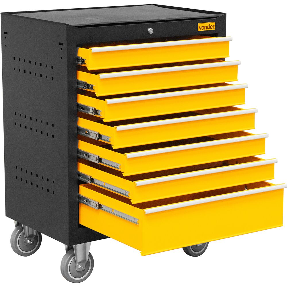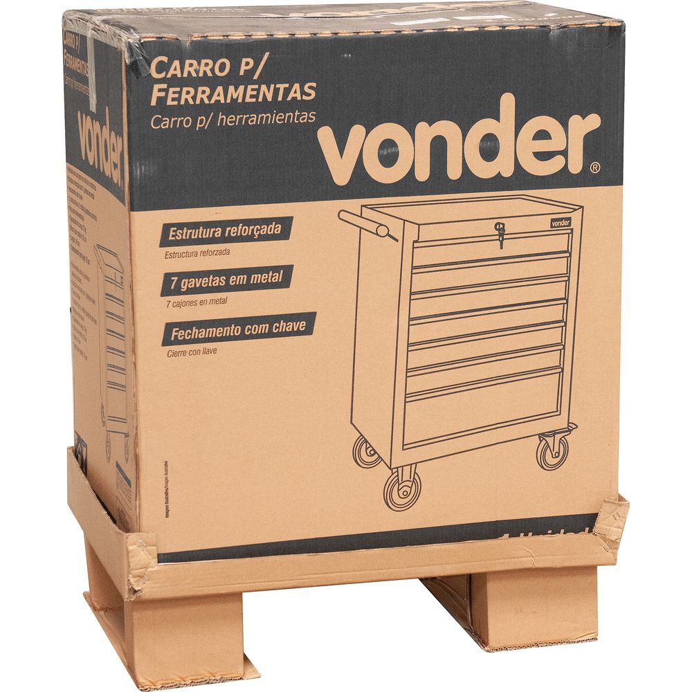 Cod. do Fornecedor: 3599840670Marca: VonderConteúdo da embalagem: 1 Carro para Ferramentas 7 Gavetas VonderDestaques e diferenciais:Possui estrutura reforçada com 7 gavetas em metal, fechamento com chave, 2 rodízios fixos, 2 rodízios giratórios com freio e alça para movimentaçãoAplicações e dicas de uso:Indicado para uso geral em oficinas e indústriasCaracterísticas Técnicas:Altura do carrinho para ferramentas: 92,0 cmLargura do carrinho para ferramentas: 46,0 cmComprimento do carrinho para ferramentas: 78,0 cmMaterial do carrinho para ferramentas: Aço carbonoCapacidade de carga do carrinho para ferramentas: 200 kgfGarantia:Garantia legal: 90 dias