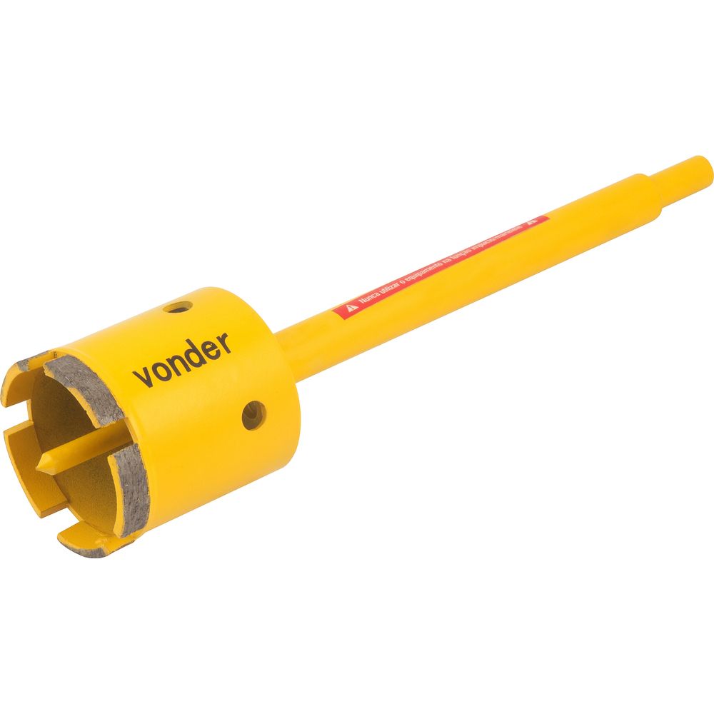 Conteúdo Embalagem:1 Serra copo diamantada com haste e pino guia de 6,2 mm de diâmetroDestaques e diferenciais:Facilita a realização de furos de grandes diâmetros em tempo reduzidoAplicações e dicas de uso:Indicada para cortar telhas, tijolos, cerâmicas, azulejos, granitos, entre outros. Quando utilizada com o pino guia, deve-se fazer um furo com broca de vídea antes. Nunca utilizar o equipamento na função IMPACTO/MARTELETE.Características Técnicas:Diâmetro da serra copo: 53 mm Altura útil aproximada da serra copo: 58 mm Altura da camada de diamante: 6,0 mm Diâmetro da haste: 14,5 mm Diâmetro do encaixe da haste: 9,5 mm Comprimento total da haste: 170 mm Material da serra copo: Corpo metálico com dentes diamantados (Aço carbono C45)Garantia:Garantia legal: 90 dias