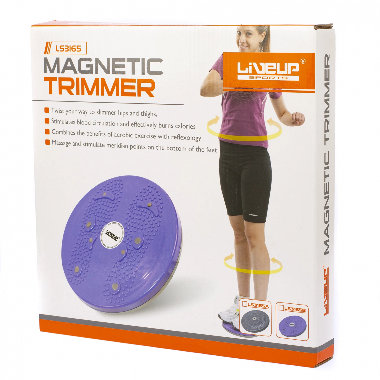 Ref.: LS3165B Marca: LIVEUP Descrição -Disco Magnetic Trimmer é plataforma rotativa que fornece uma forma de exercício aeróbico vigoroso. Estimula a circulação sanguínea.-Efetivamente queima calorias e combina os benefícios de exercícios aeróbicos com reflexologia. O disco tem oito partículas magnéticas sobre ele, vai massagear e estimular pontos meridianos na parte inferior dos pés e ajudar a promover a boa saúde. Combina os princípios da reflexologia, exercícios e terapia magnética para produzir um sistema de exercício. Fornece tanto um exercício aeróbico e cardio-vascular. Adequado para as famílias, compacto e fácil de transportar Especificações Plástico de Engenharia Superior Suporta até 200Kg Instruções de limpeza Limpar com pano úmido e sabão neutro.