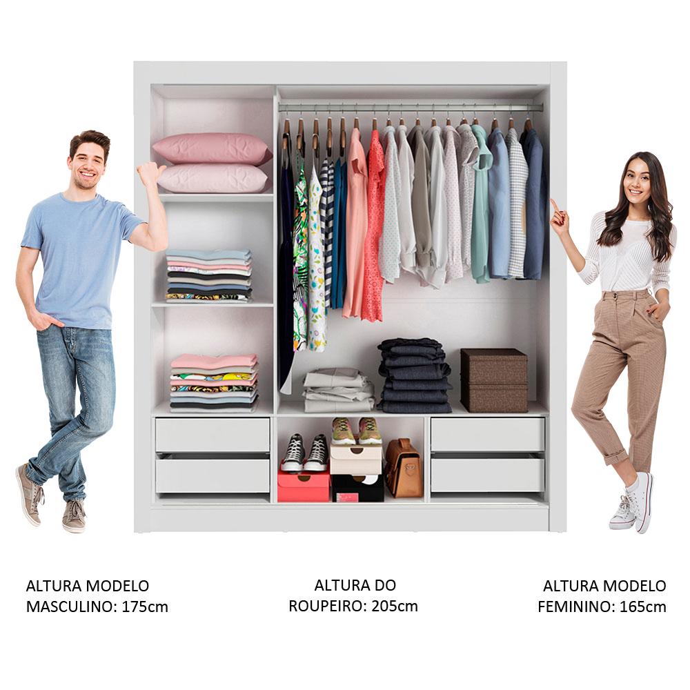 O Guarda-Roupa de Casal com melhor custo benefício do mercado. Ferragens de qualidade, uma porta com espelho, cabideiro metálico, quatro gavetas e pintura em Poliéster Protetor que confere durabilidade e resistência. As portas de correr possuem trilho superior e inferior em alumínio e sistema de deslizamento suave garantindo melhor funcionamento.Total aproveitamento interno levando em conta o uso de duas pessoas. Nesta versão com quatro gavetas internas com corrediça metálica, diversos nichos que facilitam a organização de roupas, calçados e acessórios. O tubo cabideiro é muito resistente e possui espaço para roupas longas.Possui acabamento interno e externo branco. As portas possuem acabamento em amadeirado Rustic. A pintura é ecológica, isenta de gases que vão para a atmosfera.Medidas totais do armário: 205 cm de altura x 170 cm de largura x 51 cm de profundidade.Imagem meramente ilustrativa.Itens inclusos:- Três (3) prateleiras totalizando quatro (4) nichos- Quatro (4) gavetas internas- Um (1) cabideiro grande- Três (3) portas de correr sendo duas (2) de madeira com puxadores em alumínio e uma (1) com espelhoCódigo do produto: 10939B1E4GObs.: A Madesa não disponibiliza serviço de montagem. O produto segue com manual e todas as ferragens necessárias para a instalação.Garantia: Este produto conta com 1 ano de garantia total, sendo 3 meses de garantia legal e 9 meses de garantia contratual. A garantia cobre exclusivamente defeitos de fabricação e vícios ocultos. Não estão cobertos: problemas decorrentes de montagem incorreta, uso inadequado, exposição à umidade, calor ou luz solar direta, modificações no produto ou desgaste natural.A Madesa possui compromisso com a sustentabilidade. Geramos energia limpa em nossa própria usina, priorizamos fornecedores responsáveis e utilizamos plástico reciclado em nossa produção. Além disso, reinserimos sobras no ciclo de reciclagem e investimos no desenvolvimento de nossos colaboradores e da comunidade.