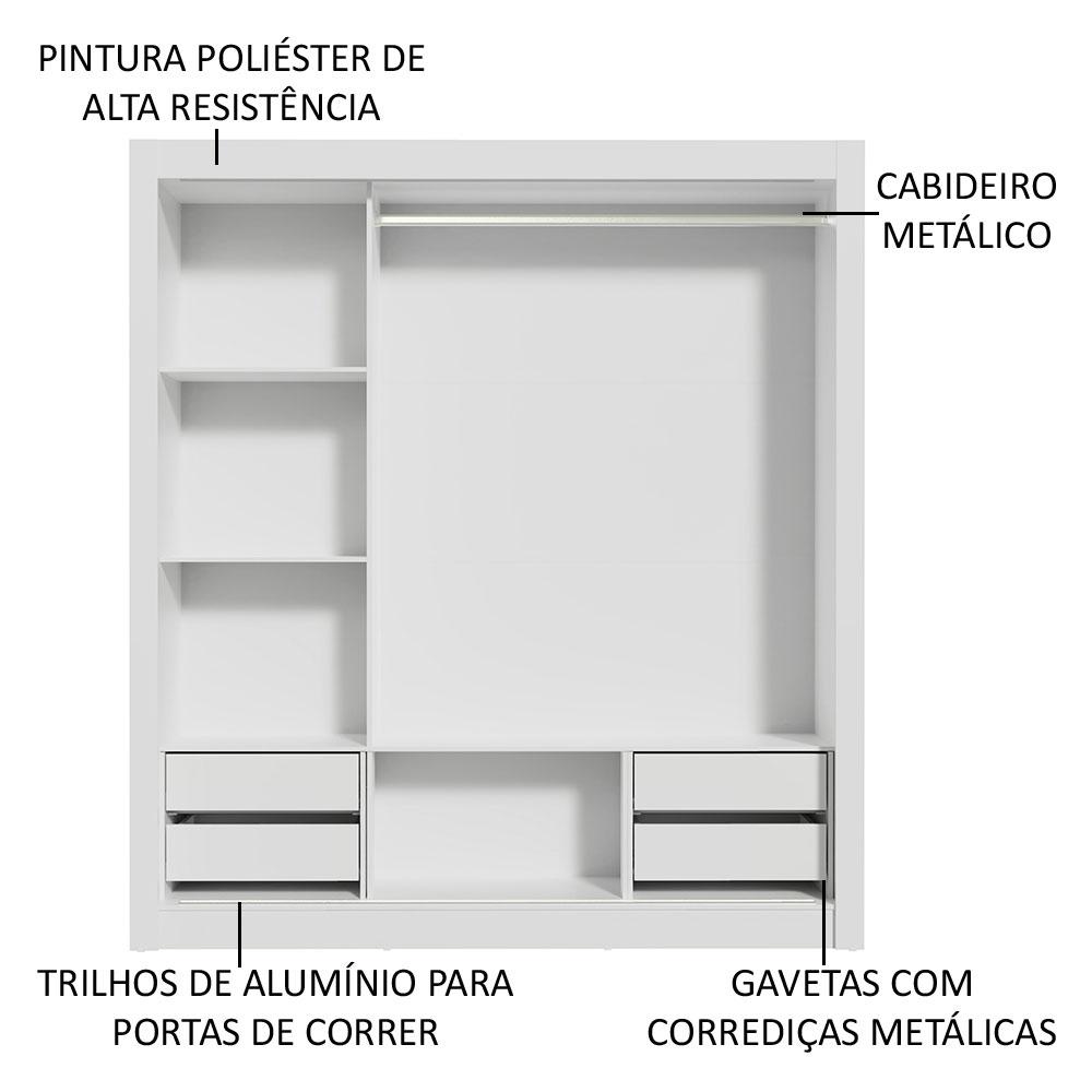 Guarda Roupa Casal Madesa Lyon Plus 3 Portas de Correr com Espelho 4 Gavetas - Branco/Rustic
