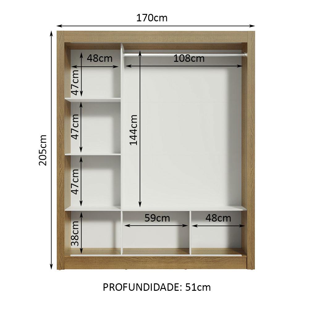 O Guarda-Roupa Casal Mônaco da Madesa conta com ferragens de qualidade, portas de correr com trilho superior e inferior em alumínio e sistema de deslizamento suave garantindo melhor funcionamento.O aproveitamento interno é ideal para um casal. São diversos nichos que facilitam a organização de roupas, calçados e acessórios. O tubo cabideiro é metálico, muito resistente e possui espaço para roupas longas.O acabamento da estrutura é em amadeirado Rustic e o das portas é cinza. É feito em Pintura Poliéster de sete camadas exclusiva da Madesa, um método ecológico e que confere maior durabilidade ao produto.Medidas totais:- 205 cm de altura- 170 cm de largura- 51 cm de profundidadeItens inclusos:- Três (3) prateleiras totalizando seis (6) nichos- Um (1) cabideiro grande- Três (3) portas de correr com dois (2) puxadores em alumínioCódigo do produto: 1093F9Obs.:- As imagens são meramente ilustrativas- A Madesa não disponibiliza serviço de montagem- O produto segue com as ferragens e manual com todos os passos para a instalação1 – O produto vem montado? Se não, vocês realizam a montagem?R.: A Madesa não disponibiliza serviço de montagem. Todos os produtos seguem com manual de instalação e as ferragens necessárias. Alguns produtos possuem vídeo explicando o passo a passo da montagem.2 – Vocês possuem loja física? Posso retirar meu produto em mãos?R.: Não possuímos loja física, apenas loja virtual. Confira as opções de envio ao colocar o seu CEP.3 – Qual é o valor do envio? Posso pagar separadamente?R.: O valor do envio é calculado com base no peso e volume do produto, e no CEP de destino. Você pode calcular o valor e prazo de entrega no simulador.4 – A Madesa entrega em todo Brasil? Como é feita a entrega?R.: Sim, entregamos no Brasil inteiro através de transportadoras parceiras.5 – Os produtos possuem garantia?R.: Sim. A Madesa oferece 3 meses de garantia para defeitos de fabricação.A Madesa possui compromisso com a sustentabilidade. Geramos energia limpa em nossa própria usina, priorizamos fornecedores responsáveis e utilizamos plástico reciclado em nossa produção. Além disso, reinserimos sobras no ciclo de reciclagem e investimos no desenvolvimento de nossos colaboradores e da comunidade.Garantia: Este produto conta com 1 ano de garantia total, sendo 3 meses de garantia legal e 9 meses de garantia contratual. A garantia cobre exclusivamente defeitos de fabricação e vícios ocultos. Não estão cobertos: problemas decorrentes de montagem incorreta, uso inadequado, exposição à umidade, calor ou luz solar direta, modificações no produto ou desgaste natural.