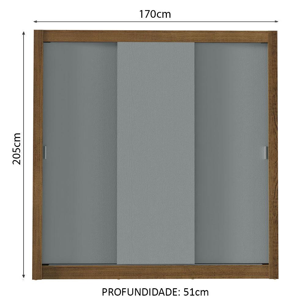Guarda-Roupa Casal Madesa Mônaco 3 Portas de Correr - Rustic/Cinza