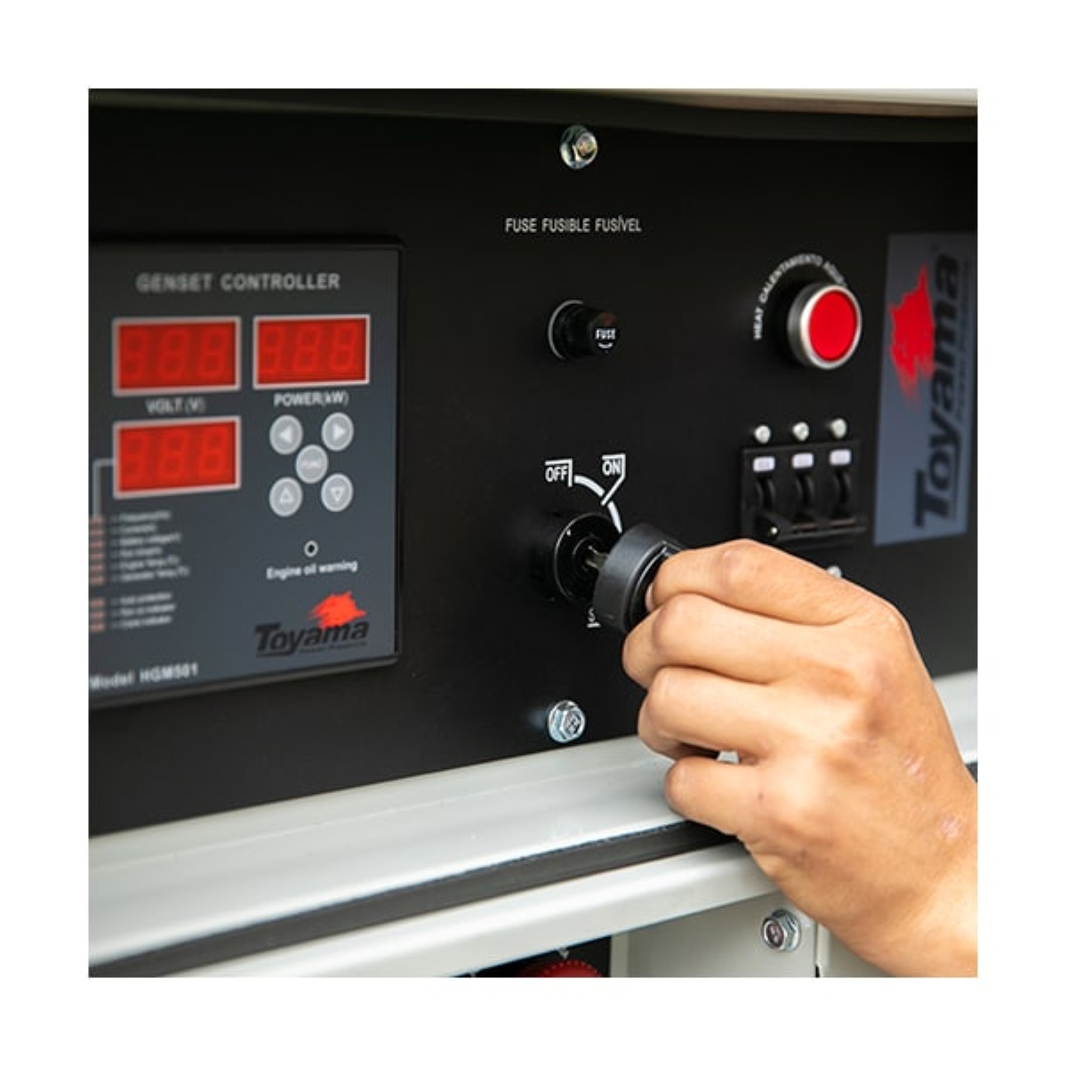 Gerador Diesel Toyama Trifásico 220V: Potência 12.5 kVA Confiável e Silenciosa Busca uma solução robusta e eficiente para o fornecimento de energia em sua obra, comércio ou residência? O Gerador Diesel Cabinado Toyama TDWG12000SGE3D-N é a escolha ideal para quem exige performance superior e confiabilidade para uso frequente. Equipado com um potente motor a Diesel V-Twin de 19.4 HP, 2 cilindros e 3600 RPM, este gerador é refrigerado a água através de radiador, garantindo longa vida útil e desempenho consistente mesmo sob cargas elevadas. Com um alternador síncrono trifásico de 220V, oferece uma potência máxima de 12.5 kVA e nominal de 11 kVA, ideal para alimentar diversos equipamentos simultaneamente. O regulador eletrônico automático de tensão (AVR) assegura uma energia estável e segura para seus aparelhos mais sensíveis, protegendo-os contra variações. O grande diferencial está na sua carenagem silenciada em chapas de aço com tratamento acústico interno, que proporciona baixíssimos níveis de ruído, tornando-o perfeito para ambientes onde o conforto sonoro é essencial. Além disso, conta com portas laterais que facilitam o acesso para manutenções periódicas. Projetado para atender demandas intensas, o gerador Toyama oferece a flexibilidade de acionamento manual ou automático (com painel ATS vendido separadamente), sendo a garantia de energia que você precisa. Especificações Marca: Toyama Código: 254-011 Refrigeração: Refrigerado a Água Cilindros: 2 Cilindros Tipo do Motor: 4 Tempos Sistema de Partida: Elétrica Cilindrada: 794 cc Rotação Máxima: 3600 RPM Capacidade do Tanque: 26 l Capacidade do Óleo: 2,27 l Potência Máxima: 12.5 kVA Potência Nominal: 11 kVA Número de Fases: Trifásico Tensão Principal: 220 V Frequência: 60 Hz Fator de Potência: 0,8 cos Tomadas Principais: 1x 127 V e 1x 220 V Carregador de Bateria: 12VDC 8A Capacidade do Radiador: 3,5 l Corrente Nominal: 29 A Grau de Proteção: IP21 Recursos Adicionais: AVR, Controlador SmartGen HGM501, Disjuntor de proteção contra curto Itens Inclusos Gerador Diesel Toyama TDWG12000SGE3D-N Perguntas Frequentes (FAQ) Pergunta: Qual a potência máxima e nominal deste gerador Toyama?Resposta: A potência máxima é de 12.5 kVA, enquanto a potência nominal é de 11 kVA. Pergunta: Este gerador é silencioso?Resposta: Sim, ele possui uma carenagem silenciada com tratamento acústico interno que proporciona baixos níveis de emissões sonoras. Pergunta: Posso usar este gerador para quais tipos de aplicação?Resposta: É indicado para uso frequente em diversas aplicações como construção civil, pequenos comércios, residências ou em qualquer situação que exija fornecimento de energia elétrica confiável.