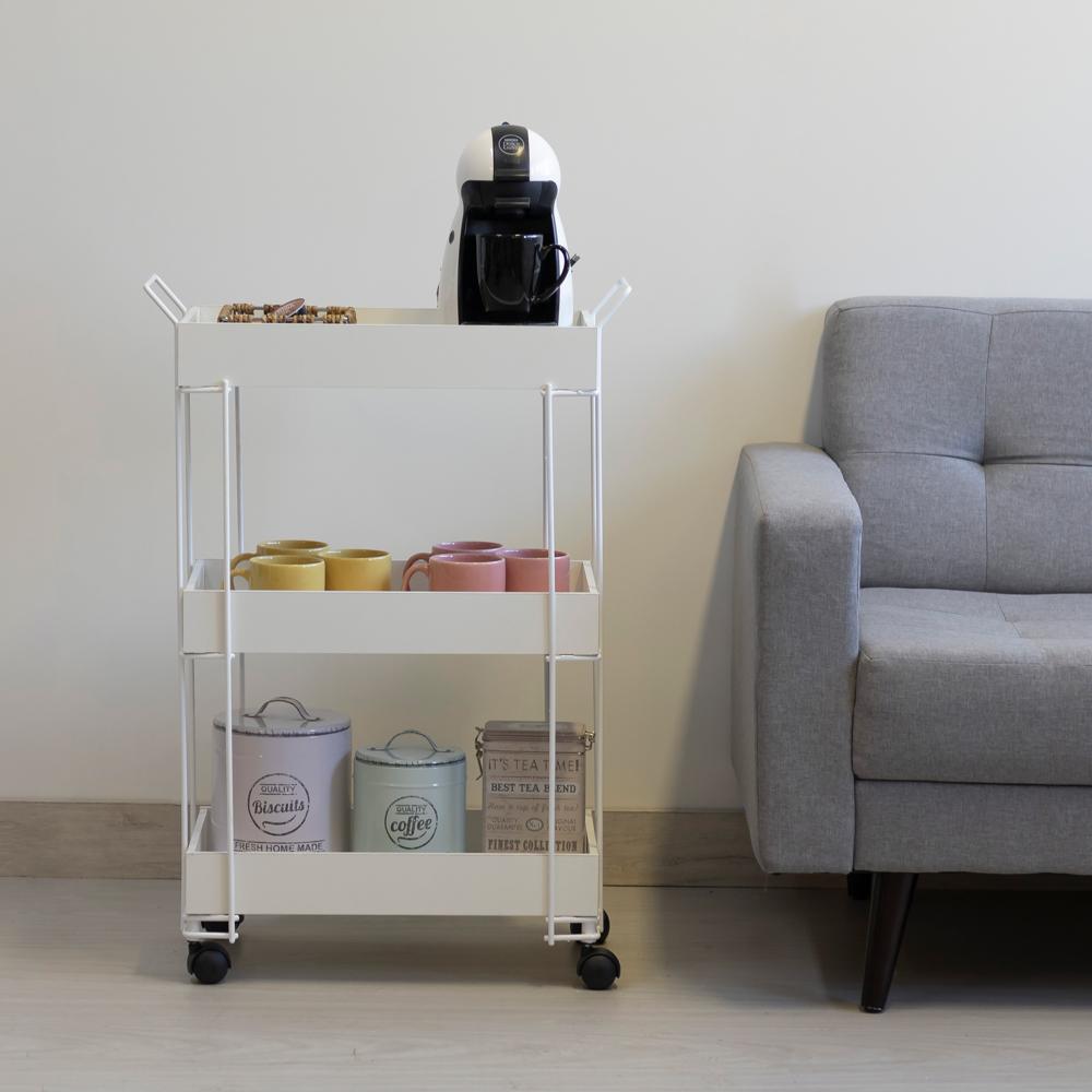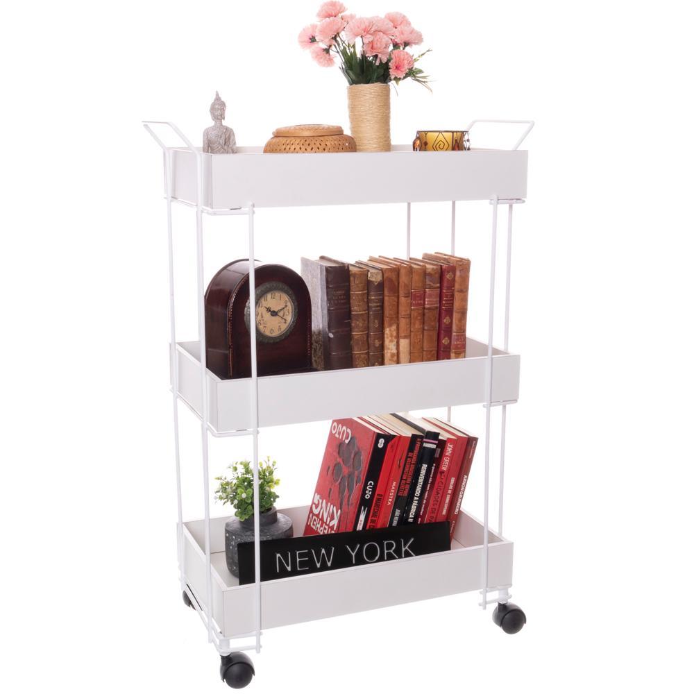 O Carrinho Multiuso 3 Andares White é muito mais do que um simples carrinho, é um item prático e versátil, perfeito para auxiliar na organização da sua casa. Com dimensões de 30 x 54 x 81 (CxLxA), este carrinho oferece espaço de armazenamento em três andares, possibilitando a organização de diversos itens de forma eficiente.Características: Design Funcional: Com três andares espaçosos, este carrinho permite armazenar e organizar uma grande variedade de objetos, mantendo tudo sempre ao seu alcance. Material de Qualidade: Fabricado em aço com pintura eletrostática e madeira, o Carrinho Multiuso 3 Andares White é resistente e durável, garantindo sua longa vida útil. Fácil Limpeza: Para manter o carrinho sempre limpo, basta utilizar sabão ou detergente neutro e uma esponja macia. Evite o uso de solventes, objetos cortantes ou abrasivos, que podem danificar o material.Com o Carrinho Multiuso 3 Andares White, a organização da sua casa se torna muito mais prática e funcional. Ideal para diversos ambientes, este carrinho é a escolha perfeita para quem busca praticidade aliada a um design moderno e elegante. Garanta já o seu e simplifique o seu dia a dia com estilo!Organize sua casa com praticidade e estilo com o Carrinho Multiuso 3 Andares White. Feito em aço e madeira, resistente e durável, possui 3 andares espaçosos para armazenar diversos objetos. Prático e funcional, simplifique seu dia a dia com esse item versátil!