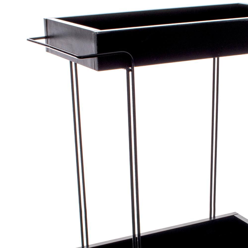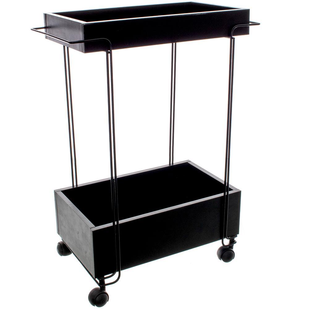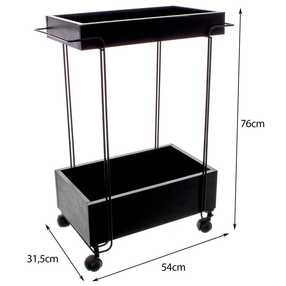 O Carrinho 2 Andares 76cm Black é muito mais do que um simples carrinho, é um item versátil e prático para auxiliar na organização da sua casa. Com dimensões de 31,5 x 54 x 76 cm (CxLxA), este carrinho oferece duas prateleiras espaçosas para acomodar todos os seus objetos de forma eficiente.Características:- Cor Preto: O acabamento preto confere um visual moderno e elegante ao ambiente.- Material Resistente: Fabricado em aço com pintura eletrostática e detalhes de madeira, garantindo durabilidade e resistência.- Fácil de Limpar: Para manter a aparência impecável, basta utilizar sabão ou detergente neutro e uma esponja macia. Evite o uso de solventes, objetos cortantes ou abrasivos.O Carrinho 2 Andares 76cm Black é a escolha perfeita para quem busca praticidade, estilo e organização. Adicione esse item funcional à sua casa e simplifique o seu dia a dia de forma elegante e eficiente!O Carrinho 2 Andares 76cm Black é um item versátil e prático para organizar sua casa. Com cor preto moderna, material resistente e fácil de limpar, oferece 2 prateleiras espaçosas. Ideal para praticidade, estilo e organização no dia a dia.